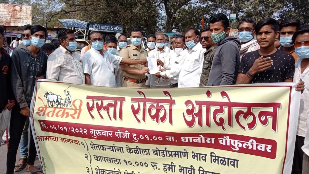 धानोरा ता.चोपडा, वार्ताहर । येथे आज गुरुवार रोजी दुपारी १ वाजता धानोरा सह परिसरातील मोजक्या शेतकऱ्यांनी कोरोना नियम पाळत विविध मागण्यांसाठी अंकलेश्वर-बऱ्हामपुर महामार्गावर रास्तारोको आंदोलन केले.
