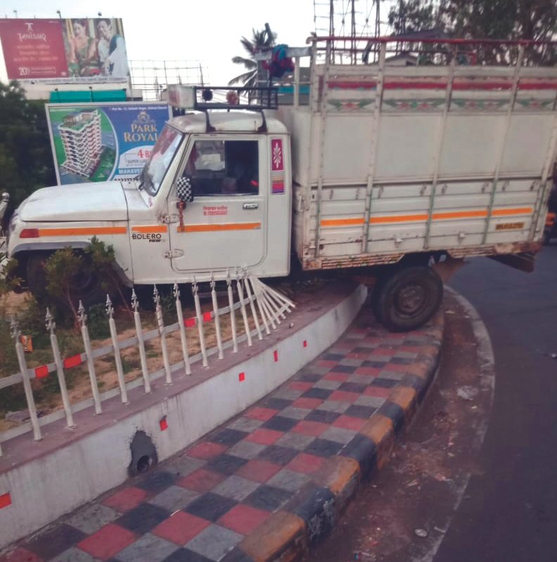 दरम्यान आज पहाटे भरधाव वेगाने जाणार्या पिकअप व्हॅनच्या चालकाला अचानक समोर सर्कल असल्याचे न दिसल्याने पिकअप व्हॅन थेट सर्कलच्या कठडे तोडून वर चढल्याचे दिसून आले. यात चालकाला दुखापत झाली आहे. यामध्ये सुदैवाने प्राणहानी झाली नसली तरी आगामी काळात भीषण अपघाताची शक्यता असल्याने या सर्कलबाबत काही तरी निर्णय घ्यावा. अन्यथा येथे किमान धोक्याची सूचना तरी ठळकपणे लावावी अशी मागणी आता होत आहे.