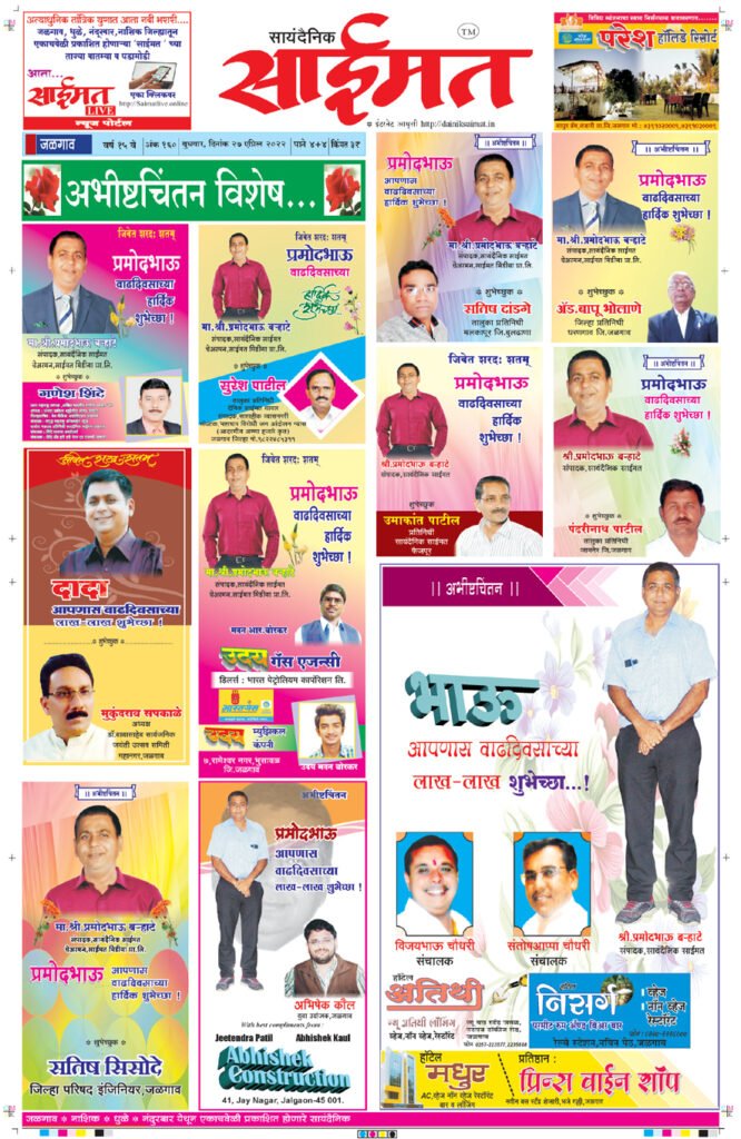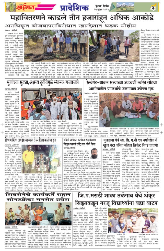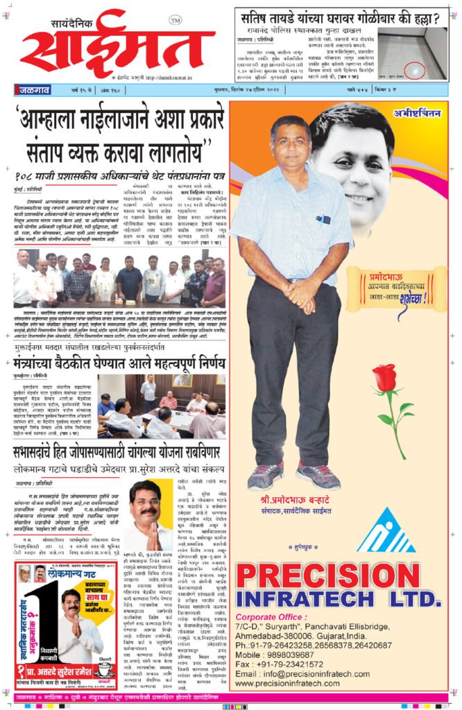 आजचा दैनिक साईमत ई – पेपर २७ एप्रिल २०२२ बुधवार