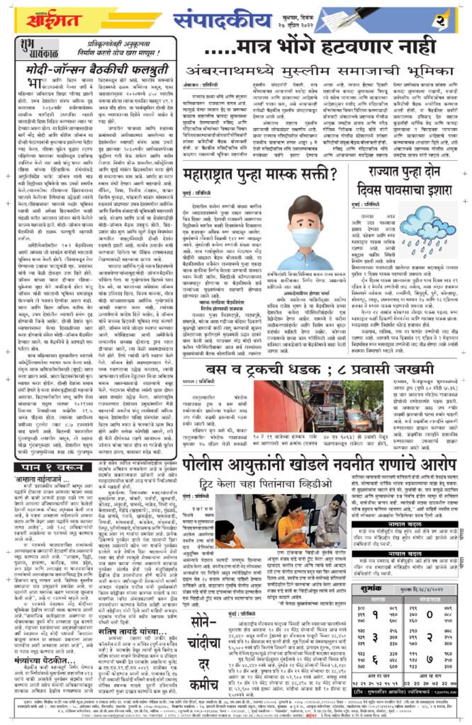 Home»Uncategorized»आजचा दैनिक साईमत ई – पेपर २७ एप्रिल २०२२ बुधवार