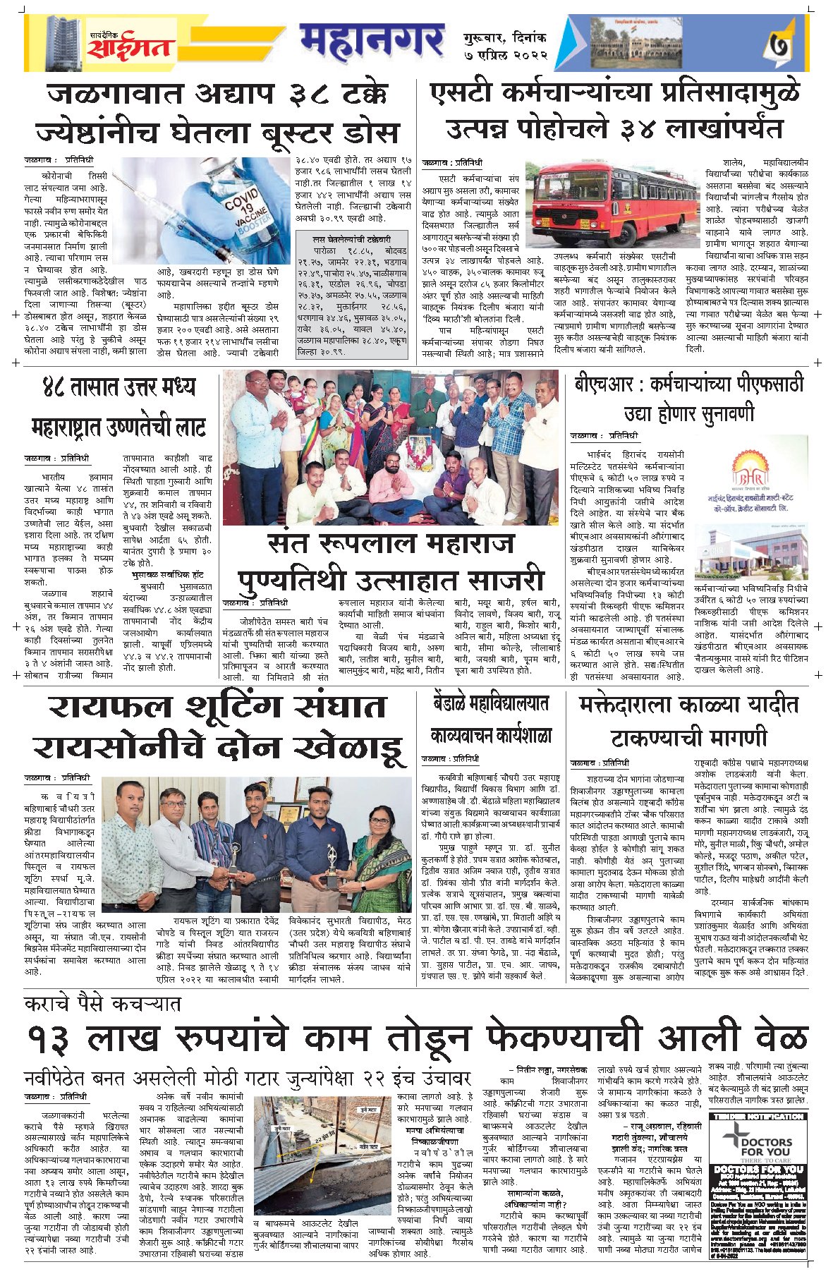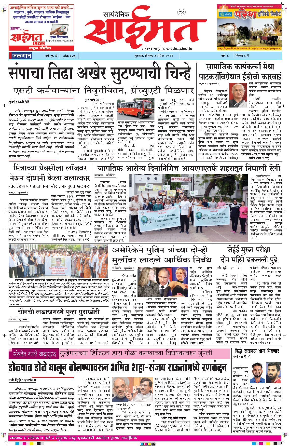 Home»Uncategorized»आजचा सायंदैनिक साईमत ई – पेपर दि ७ एप्रिल २०२२ गुरुवार