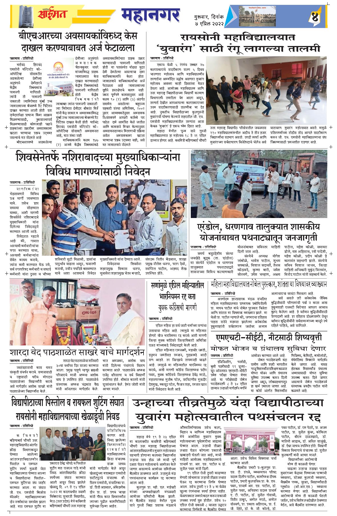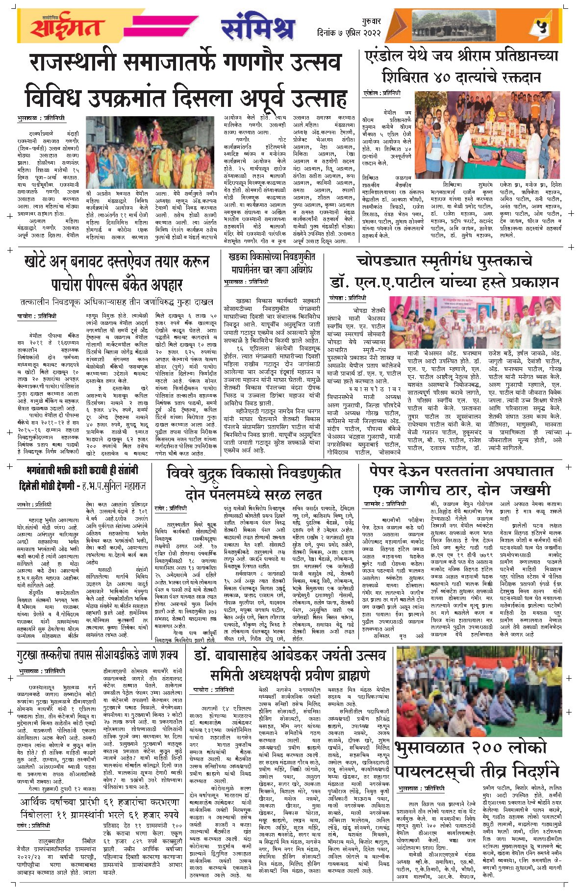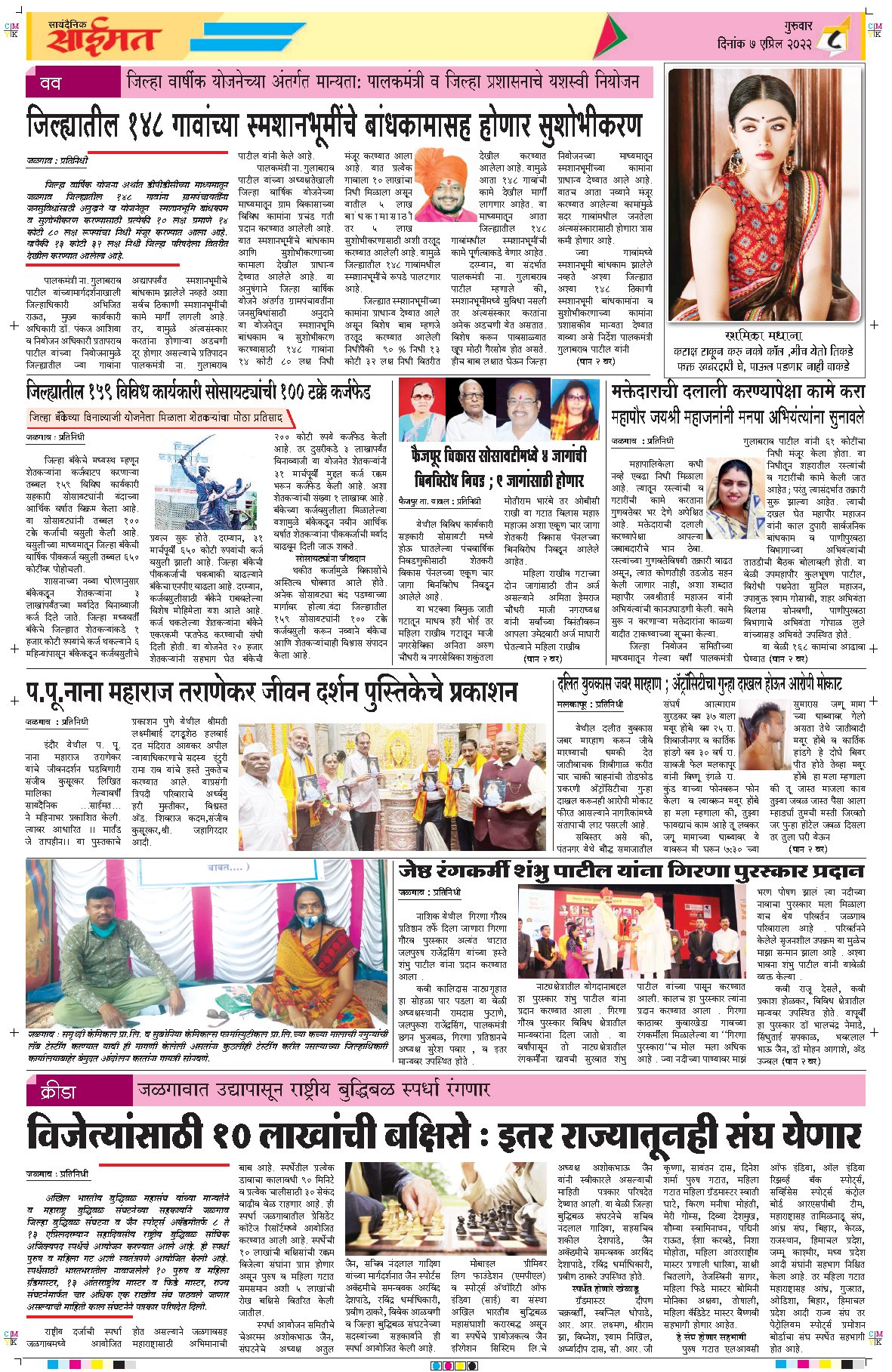 आजचा सायंदैनिक साईमत ई – पेपर दि ७ एप्रिल २०२२ गुरुवार