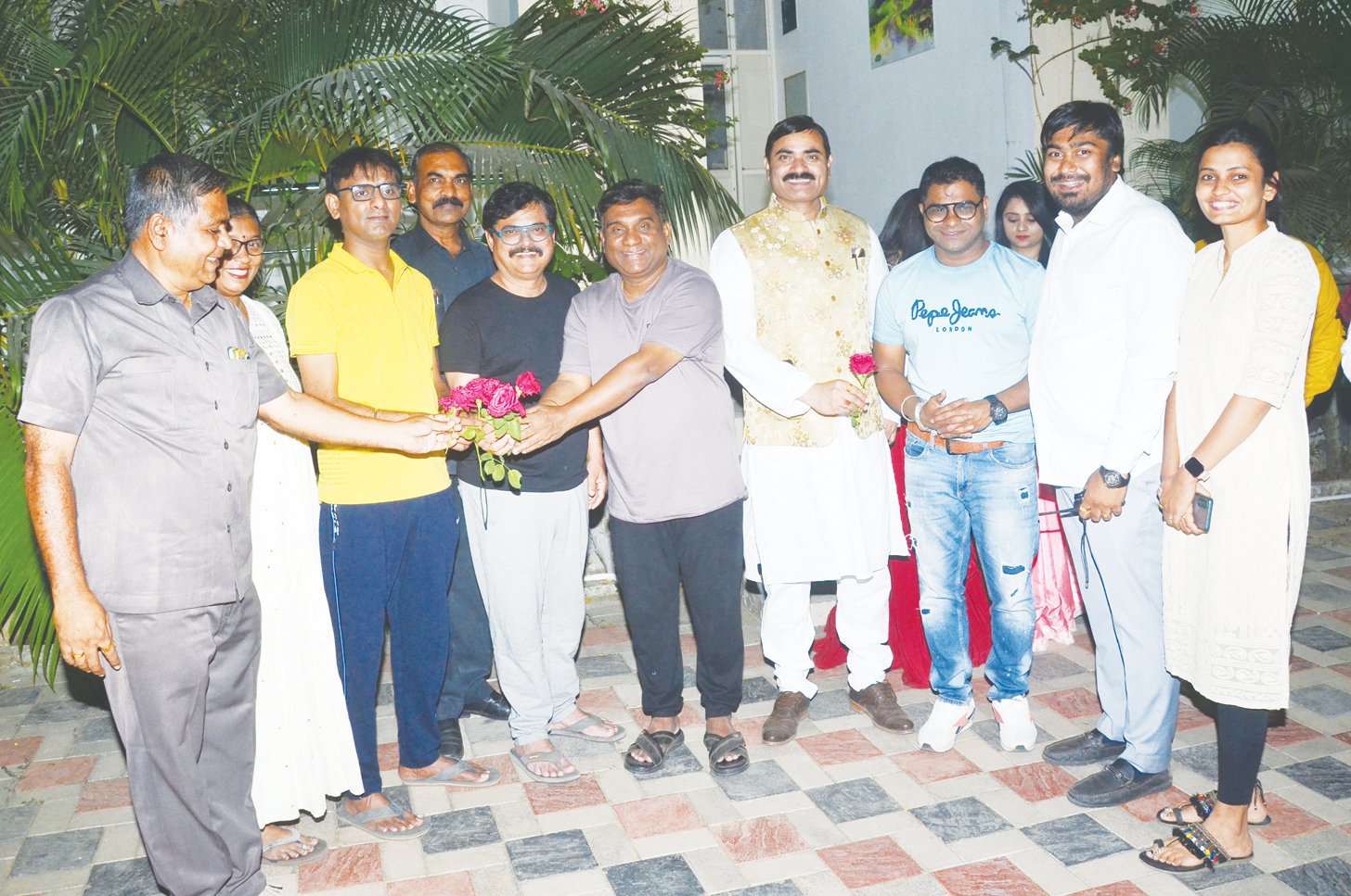 जळगाव- जिल्हा पोलिस दलातर्फे तरंग महोत्सवानिमित्त चला हवा येवू दया चा चमू जळगावात आला असता. या कलावंत चमूने वाघूर धरणाजवळील परेश हॉलिडे रिसोर्टला सदिच्छा भेट दिली. यावेळी भाऊ कदम, भरत गणशपुरे, सागर कारडे, कुशल बद्रीके, श्रेया बुगडे यांचे स्वागत करतांना ‘साईमत’ चे संपादक प्रमोद बऱ्हाटे, लोकहित दर्पणच्या संपादीका सुरेखाताई बऱ्हाटे, परेश हॉलिडे रिसोर्टचे संचालक परेश बऱ्हाटे, सुप्रिया बऱ्हाटे आदी. (छाया ः योगेश चौधरी)