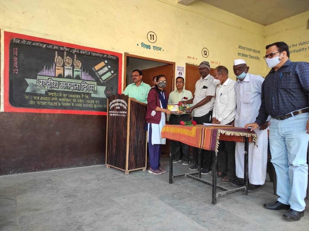 धानोरा तालुका चोपडा – भारत निवडणूक आयोग आणि महाराष्ट्र शासन शिक्षण विभाग व क्रीडा विभाग अंतर्गत १५ जानेवारी ते २५ जानेवारी दरम्यान मा.जिल्हाधिकारी अभिजित राऊत यांनी निवडणूक साक्षरता मंचाची स्थापना प्रत्येक विद्यालयात केली होती.राष्ट्रिय मतदार सप्ताह अंतर्गत मा.जिल्हाधिकारी अभिजित राऊत यांच्या मार्गदर्शनाखाली जिल्हाभरात व तालुका स्तरावर तहसिलदार अनिल गावित यांनी विविध स्पर्धा अंतर्गत निबंध स्पर्धा,चित्रकला स्पर्धा, घोषवाक्य स्पर्धा, रांगोळी स्पर्धा व आभासी पडद्यावर वक्तृत्व स्पर्धांचे आयोजन करण्यांत आले होते.या स्पर्धेत धानोरा येथील झि.तो.महाजन माध्यमिक व ना.भा.पाटिल ज्युनिअर काँलेजातील इयत्ता ९ वीची विद्यार्थीनी कु.मैथलि अनिल साळुंके हिने जिल्हातुन घोषवाक्य स्पर्धेत प्रथम पटकविला तर तालुका स्तरीय राष्ट्रीय मतदार सप्ताहानिमित्त विविध स्पर्धेत विद्यार्थ्यांनी उस्फुर्त सहभाग नोंदवत घवघवीत यश संपादन केले.निबंध स्पर्धेत लोकेश किशोर महाजन(प्रथम), चित्रकला स्पर्धेत चैताली योगेश सोनवणे (प्रथम), घोषवाक्य स्पर्धेत हर्षला देविदास सोनवणे (प्रथम),रांगोळी स्पर्धेत धनश्री प्रमोद पाटील (प्रथम), वकृत्व स्पर्धेत धनश्री  प्रमोद पाटील(प्रथम),सिद्धेश  विजय चाैधरी(दुसरा),कु.स्नेहा अनिल पाटिल(दुसरी),स्नेहल शामकांत देवरे(दुसरी) या विजयी स्पर्धकांना विद्यालयात राष्ट्रिय मतदार दिनानिमित्त आयोजित कार्यक्रमाप्रसंगी तहसिलदार अनिल गावित यांच्याकडून प्रमाणपत्र व शालेय उपयोगी वस्तु भेट देवुन गाैरव करण्यांत आला.या यशस्वी विद्यार्थांना निवडणुक नोडल अधिकारी प्रा.मिलिद बडगुजर व वासुदेव महाजन यांचे मार्गदर्शन लाभले.