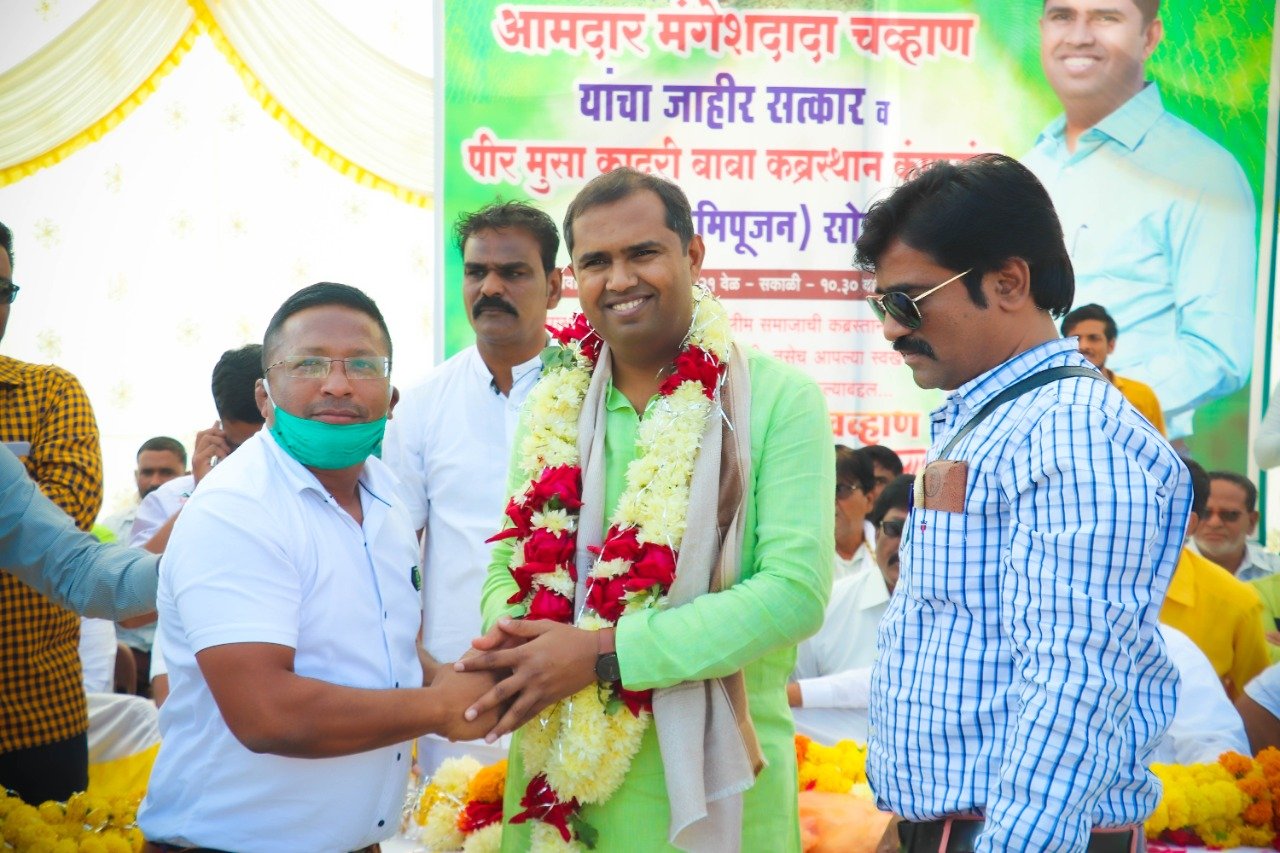 सत्काराला उत्तर देताना आमदार मंगेश चव्हाण यांनी मनोगतात सांगितले की, गेल्या ३०० वर्षांपासून हिंदू मुस्लिम समाजाच्या एकतेचे प्रतिक असणाऱ्या पीर मुसा कादरी बाबा यांच्या आशिर्वादाने आणि