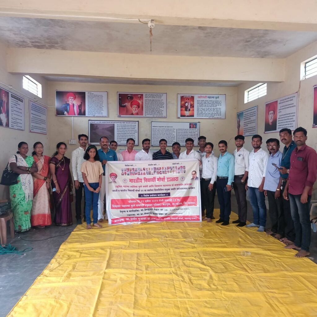 राष्ट्रपिता महात्मा ज्योतिबा फुले यांच्या जयंतीचे औचित्य साधून भारतीय विद्यार्थी मोर्चाची स्थापना करण्यात आली असून 11 एप्रिल 2022 रोजी भारतीय विद्यार्थी मोर्चाचा 11वा वर्धापनदिनानिमित्त सातारा जिल्हास्तरीय विशेष प्रबोधनाचा कार्यक्रम महात्मा ज्योतिबा फुले यांच्या जन्मगावी खटाव तालुक्यातील “कटगुण” येथे जयंती आणि वर्धापनदिनाचा कार्यक्रम मोठ्या उत्साहात संपन्न..!