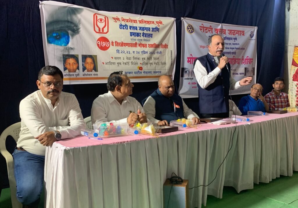 येथील रोटरी क्लब जळगाव, रामदास पाटील स्मृती सेवा ट्रस्ट, प्रभाकर पाटील हॉस्पिटल आणि पुणे नेत्रसेवा प्रतिष्ठान यांच्या संयुक्त विद्यमाने मोफत तिरळेपणा तपासणी व शस्त्रक्रिया तसेच पापणी पडणे याविषयी तीन दिवसीय शिबिराचे आयोजन करण्यात आले होते.