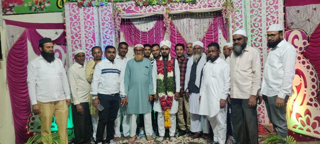 कजगाव, प्रतिनिधी । कजगाव येथील रहिवासी व फळ व्यापारी शेख सम्मद शेख इस्माईल मनियार यांचे द्वितीय चिरंजीव अवेश सम्मद मनियार यांचा विवाह दिनांक 11/2/2022 शुक्रवारी रोजी ता, जिल्हा , वाशीम येथील कैसर अहमद सर यांची कन्या उंम्मे जवेरीया यांच्याशी ठरला परंपरेप्रमाणे मनियार परिवार हे वासिम येथेल साखरपुड्यासाठी गेले , दोनी कडील मंडळींनी व परिवारातील सदस्य यांनी साखरपुड्यात विवाह आटोपण्याचा निर्णय घेतला , कजगाव येथील आवेश शेख समद मनीयार त्यांनी मोठे पणा दाखवत विवाहाचा पायंडा मोडत काही न घेता व इतर खर्चाला लगाम घालत निकाह करत अनाठायी खर्चला फाटा दिला, व धर्मगुरूंना बोलावून समाजाच्या रीतिरिवाजाप्रमाणे दोघांचे लग्नगाठ बांधत लग्न लावून मुस्लिम समाजात आदर्श निर्माण केला , मुस्लिम समाजातील पहीला निकाह असा झाल्याने सर्वांनीच आनंद व्यक्त केला , व दोघ परिवारांनी या निर्णयाचे स्वागत करत विवाह करण्याचे ठरविले या निर्णयाला समाजातील इतर जेष्ठ व नातेवाईकांनी पाठिंबा दर्शविला मुस्लिम समाजात विवाह होणाऱ्या खर्चाला बगल देत हा विवाह करण्यात आला या विवाहासाठी दोघे कुटुंबातील व्यक्ती तसेच मनियार कुटुंबातील हाजी शफी शेख इस्माईल मनियार , शेख शाकीर मनियार, सम्मद मनियार, मुस्ताक मनियार , डॉक्टर फारुख , युनूस हाजी अहेमद मनीयार ,शेख असिफ मनियार , सादिक मनियार , शहीद मनियार ,अनिस मनियार , वसीम मनियार, फारुख मनियार , व मूलीकडून नांदेड जिल्हा मनियार बिरादरीचे अध्यक्ष अहमद अब्दुल गनी , मोहम्मद सुलतान मोहम्मद इस्माईल अर्धापूर नांदेड , नगरसेवक शेख मुनीर भाई वाशिम , शेख जमील भाई शेगाव व मनोहर पंचकमिटी वाशिम यांच्या नेतृत्वाखाली सदर विवाह सोहळा संपन्न झाला ,सर्व मनियार परिवारातील सदस्य उपस्थित होते