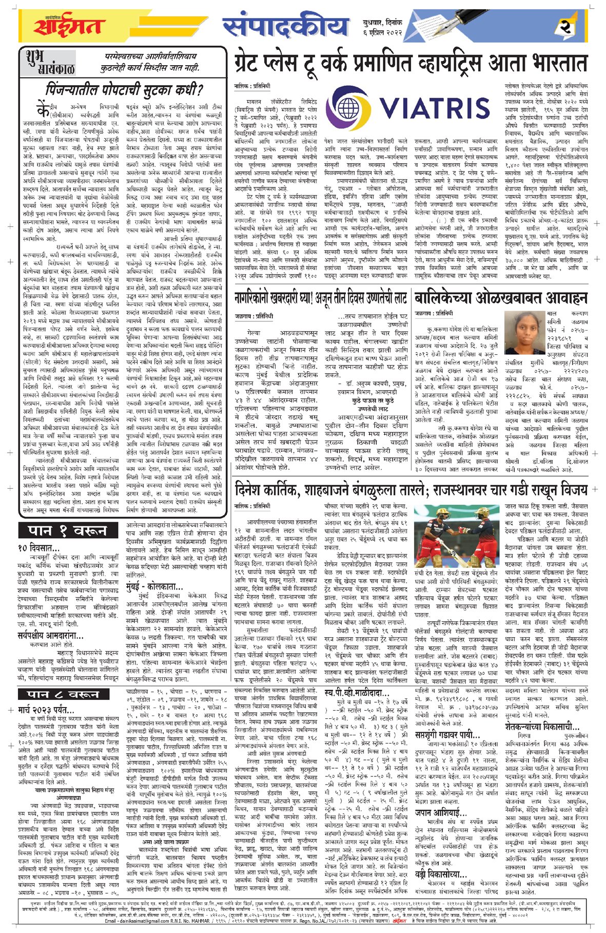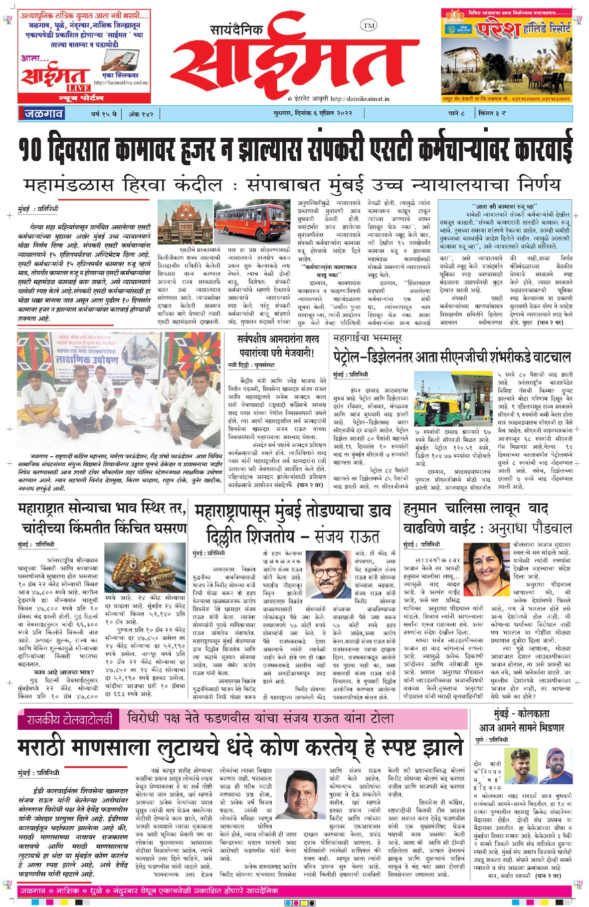 Uncategorized सायंदैनिक साईमत ई – पेपर दि ६ एप्रिल २०२२ बुधवार By Saimat - April 6, 2022 0 82 FacebookTwitterPinterestWhatsApp