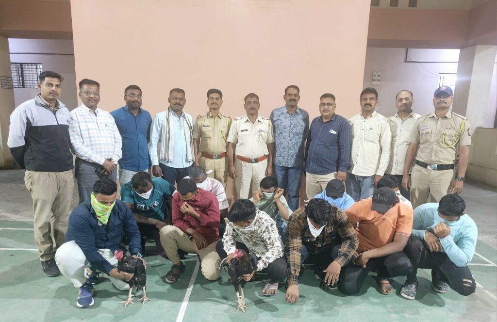 कोंबड्यांची झुंज लावून जुगार खेळणाऱ्या ११ जणांना मुद्देमालासह अटक