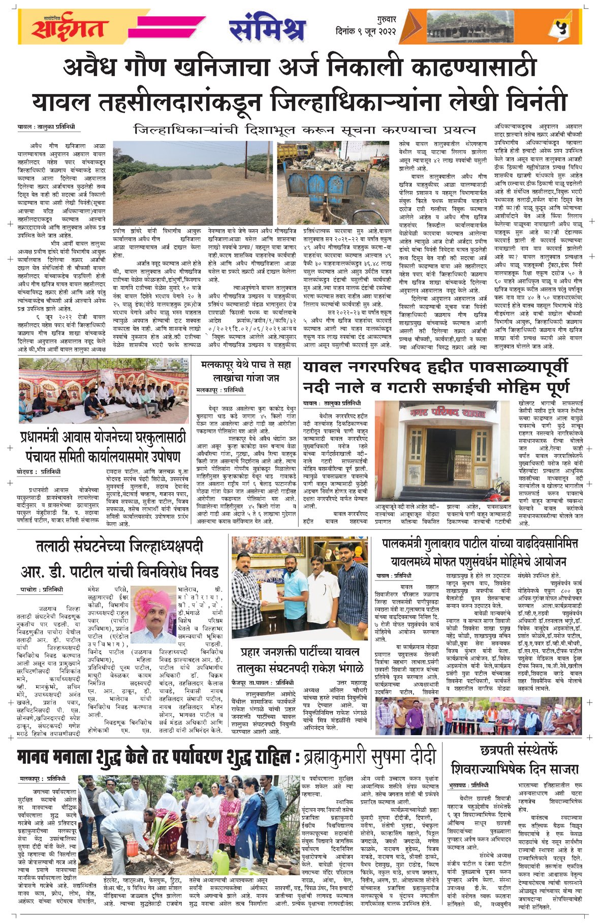 आजचा सायंदैनिक साईमत ई-पेपर ९ जून २०२२ गुरुवार