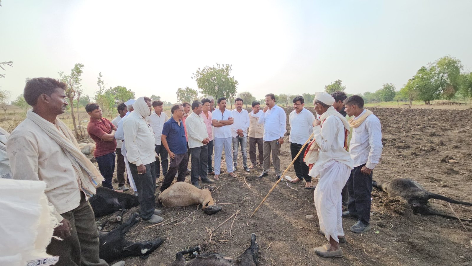 तालुक्यातील काकोडा येथील रहिवाशी मेंढपाळ नामदेव चोपडे, भरत मदने, भोजू मदने, ज्ञानेश्वर मदने यांचे सर्वांचे मिळून जवळपास 90 ते 100 मेंढी पशुधन उष्मघात मुळे थेरोळा शिवारात मृत्यू मुखी पडलेल्या होत्या. घटनेची माहिती कळताच त्याठिकाणी आमदार चंद्रकांत पाटील यांनी तहसीलदार गिरीश वखारे , पशू वैद्यकीय अधिकारी यांची 8 ते 9 जणांची टीम, मंडळ अधिकारी, तलाठी यांना सोबत घेऊन भेट दिली.