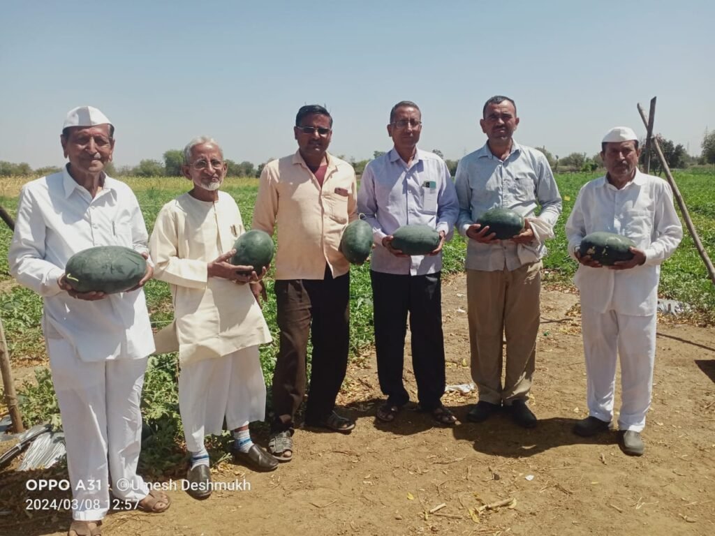टरबुजाचे चांगले उत्पादन घ्यायचे असल्यास आपल्या शेतात मधमाशी असणे फार गरजेचे आहे. फुलावरील परागकण स्थलांतरित होऊन फळ तयार होण्यास लवकर मदत होते, असे ते सांगतात. आपल्या लोहारा गावातील शेतकरी चांगले उत्पन्न घेत असल्याने विश्वासराव पाटील यांनी समाधान व्यक्त केले. कृषी खात्यामार्फत काही योजना शेतकऱ्यांनी राबवून घेत शेतीचा विकास करावा, असे सांगितले. आदर्श शेतकरी ज्ञानेश्वर माळी यांनी लागवड केलेल्या टरबूजाचा आस्वाद सर्वांना दिला. यावेळी विश्वासराव पाटील, सुभाष पाटील, गुरुवर्य पटेल, श्री.सुर्वे, उमेश देशमुख, पत्रकार गजानन क्षीरसागर उपस्थित होते.