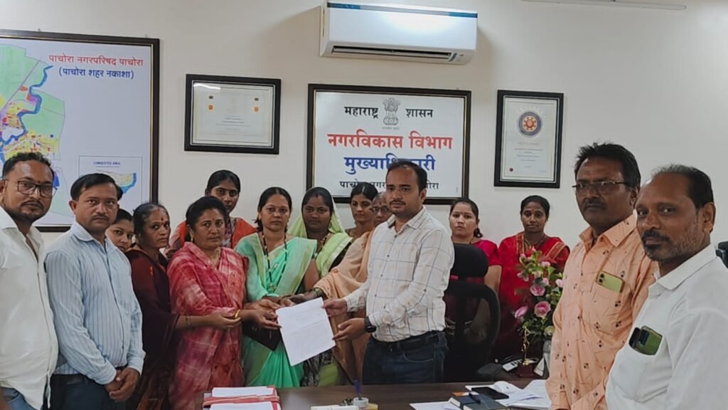 पाचोरा नगर पालिका हद्यीतील अकृषक सर्वे नं. ४३/१/अ/१ब मध्ये शेकडो प्लॉट धारक आहेत. नगर परिषदेने भुखंडातील खुला भुखंड हा विकसित करण्याचे ठरविले आहे. तो नगरपरिषदेने विकसित करावा. जागेवर भुखंड हा कोणत्याही जाती-धर्मातील व्यक्तींना दिला जावू नये, त्यावर कोणत्याही स्वरूपाचे धार्मिक मंदीर, मस्जीद, स्तुप, वगैरेसाठी देण्यात येवू नये. भुखंड हा काही व्यक्ती तेथील नागरिक असल्याचे व प्लॉटधारक असल्याचे भासवुन खोट्या स्वाक्षऱ्यांचा आधार घेवून हडप करण्याच्या प्रयत्नात आहे.त्या ठिकाणी नागरिकांना गार्डन, सकाळ व सायंकाळी फिरण्यासाठी वाॅकिंग पार्क अथवा ऑक्सिजन पार्क करून वृक्षारोपण करण्यात यावे. खुल्या भुखंडात कोणत्याही प्रकाराचे स्टेज बनवु नये. अकृषक सर्वे नं. ४३/१/अ/१ब हा विकसित करावा, अशा आशयाचे निवेदन मुख्याधिकारी मंगेश देवरे यांना दिले आहे.