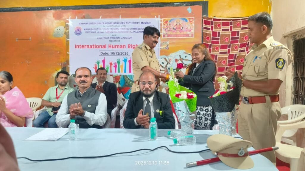 महाराष्ट्र कारागृह विभागाच्या “सुधारणा व पुनर्वसन” या धोरणात्मक ब्रीदवाक्याच्या अनुषंगाने आंतरराष्ट्रीय मानवी हक्क दिनानिमित्त जळगाव जिल्हा कारागृहात मानवी हक्क जनजागृती कार्यक्रमाचे आयोजन केले होते.