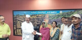 नांदातांडाला वीज पडून मृत्यूमुखी पडलेल्या शेतकऱ्याच्या वारसाला चार लाखांचा धनादेश