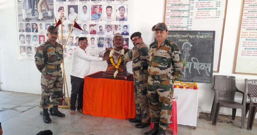 येथील विजयनाना पाटील आर्मी स्कुल आणि ज्युनिअर कॉलेज येथे ७६ वा ‘आर्मी डे’ तथा स्थल सेना दिवस नुकताच उत्साहात साजरा करण्यात आला. सुरुवातीला छत्रपती शिवाजी महाराजांच्या अर्धकृती पुतळ्याला पुष्पहार अर्पण करुन शहिदांना मान्यवरांच्या हस्ते पुष्पचक्र अर्पण करण्यात आले. यावेळी प्रभारी कमांडंट सुभेदार मेजर नागराज पाटील, सुभेदार मेजर श्रीराम पाटील, नायब सुभेदार भटू पाटील यांचा त्यांच्या सैन्य दलातील योगदानाबद्दल सत्कार करण्यात आला. अध्यक्षस्थानी प्राचार्य पी.एम.कोळी होते.