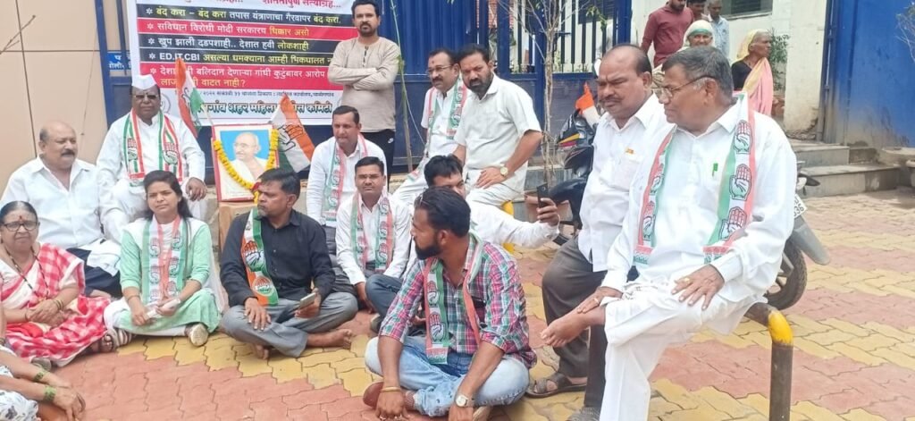 केंद्रातील भाजपचे मोदी सरकार राजकीय सूडबुद्धीने मा. काँग्रेस अध्यक्षा श्रीमती सोनियाजी गांधी यांना लक्ष्य करीत असल्याचे आज संपूर्ण देश पाहत आहे.. भाजप सरकारने घेतलेले चुकीचे निर्णय व धोरण यावरून सर्वसामान्यांचे लक्ष विचलीत करण्यासाठी काँग्रेस नेत्यांना व कार्यकर्त्यांना नाहक त्रास देण्यात येत आहे,हे हुकूमशाही शासन केंद्रीय तपास यंत्रणा चा करीत असलेल्या गैरवापरा विरुद्ध सर्व काँग्रेस कार्यकर्ते एकजुटीने काँग्रेस अध्यक्ष सोनियाजी गांधी यांच्या सोबत उभे आहेत, केंद्रातील भाजप सरकारने सूडबुद्धीने माननीय सोनियाजी गांधी यांच्याविरुद्ध ई. डी. कार्यालयात खोट्या कारवाया थांबवत नाही तोपर्यंत काँग्रेस मागे हटणार नाही.. महात्मा गांधी यांच्या फोटोला पुष्पहार अर्पण करून शांततापूर्ण मार्गाने आंदोलन सुरू ठेवतील असे जाहीर करण्यात आले.