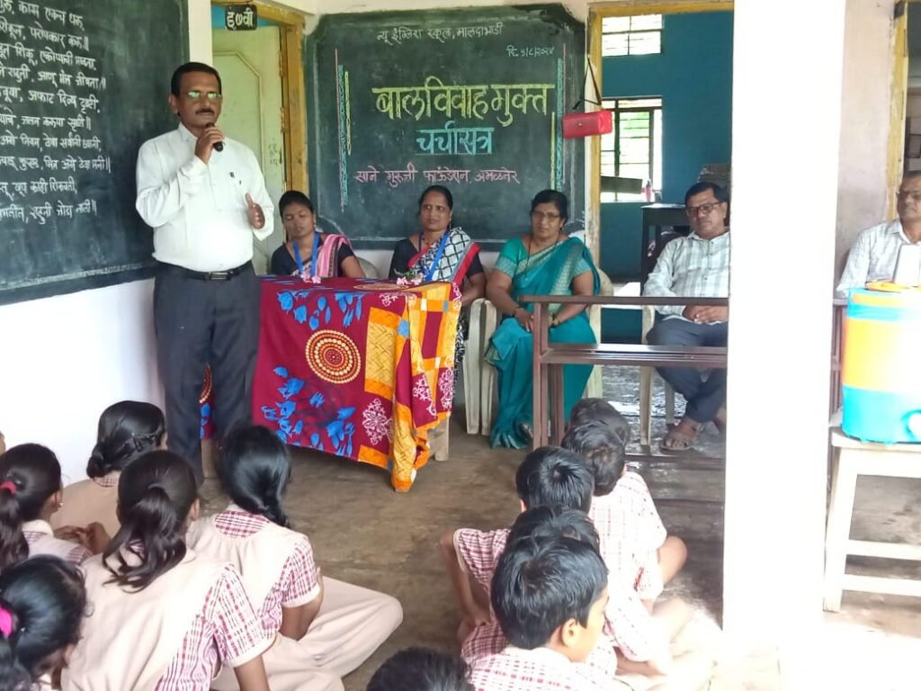 तालुक्यातील मालदाभाडी येथील न्यू इंग्लिश स्कुलमध्ये आंतरराष्ट्रीय युनीसेफ ३, एकात्मिक महिला व बालविकास, जळगाव व सानेगुरुजी फाऊंडेशन, अमळनेर यांच्या संयुक्त विद्यमाने बालविवाह मुक्त अभियान सुरू आहे. यासंदर्भात शाळेतील विद्यार्थ्यांसह पालकांसाठी चर्चासत्र आयोजित केले होते. अध्यक्षस्थानी प्र. मुख्याध्यापक एस.आर.शिकोकारे होते. यावेळी के.आर.महाजन, जी.टी.पाटील उपस्थित होते.