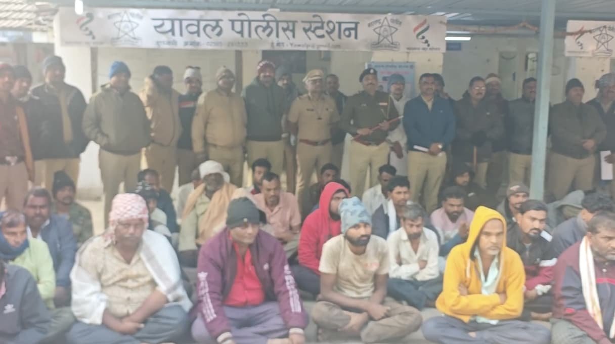 याबाबत सविस्तर माहिती अशी की, फैजपूर उपविभागातील यावल, फैजपूर, रावेर येथे होणाऱ्या सार्वत्रिक नगर पालिका निवडणुकीची महत्वाची प्रकीया सुरू आहे. ही निवडणूक प्रकिया शांततेत व भयमुक्त वातावरणात पार पडावी तसेथ उपविभागातील अभिलेखावर असलेल्या गुन्हेगारांवर कायद्याचा प्रभावी अंकुश कायम रहावा, त्यांच्याकडून निवडणूक प्रकीयेत कोणताही अनुचित प्रकार घडू नये, याकरीता महेश्वर रेडडी साधे, पोलीस अधीक्षक यांचे आदेश व सुचनान्वये शुक्रवार दि.२१ रोजी पहाटे ४ ते ७ वाजेचे दरम्यान यावल पोलीस स्टेशन हद्दीतील यावान शहर, दहिगाव,साकळी,डांभुर्णी, किनगाव,अट्रावल,निमगाव, अंजाळे येथे कोंबिंग ऑपरेशन करण्यात आले.सदर कोंबींग ऑपरेशन हे मा. महेश्वर रेडडी साधे, पोलीस अधीक्षक, जळगाव यांचे आदेशान्वये मा.उप विभागीय पोलीस अधिकारी अनिल बडगुजर, फैजपूर उप-विभाग फैजपूर यांचे नेतृत्वात राबविण्यात आले. यात