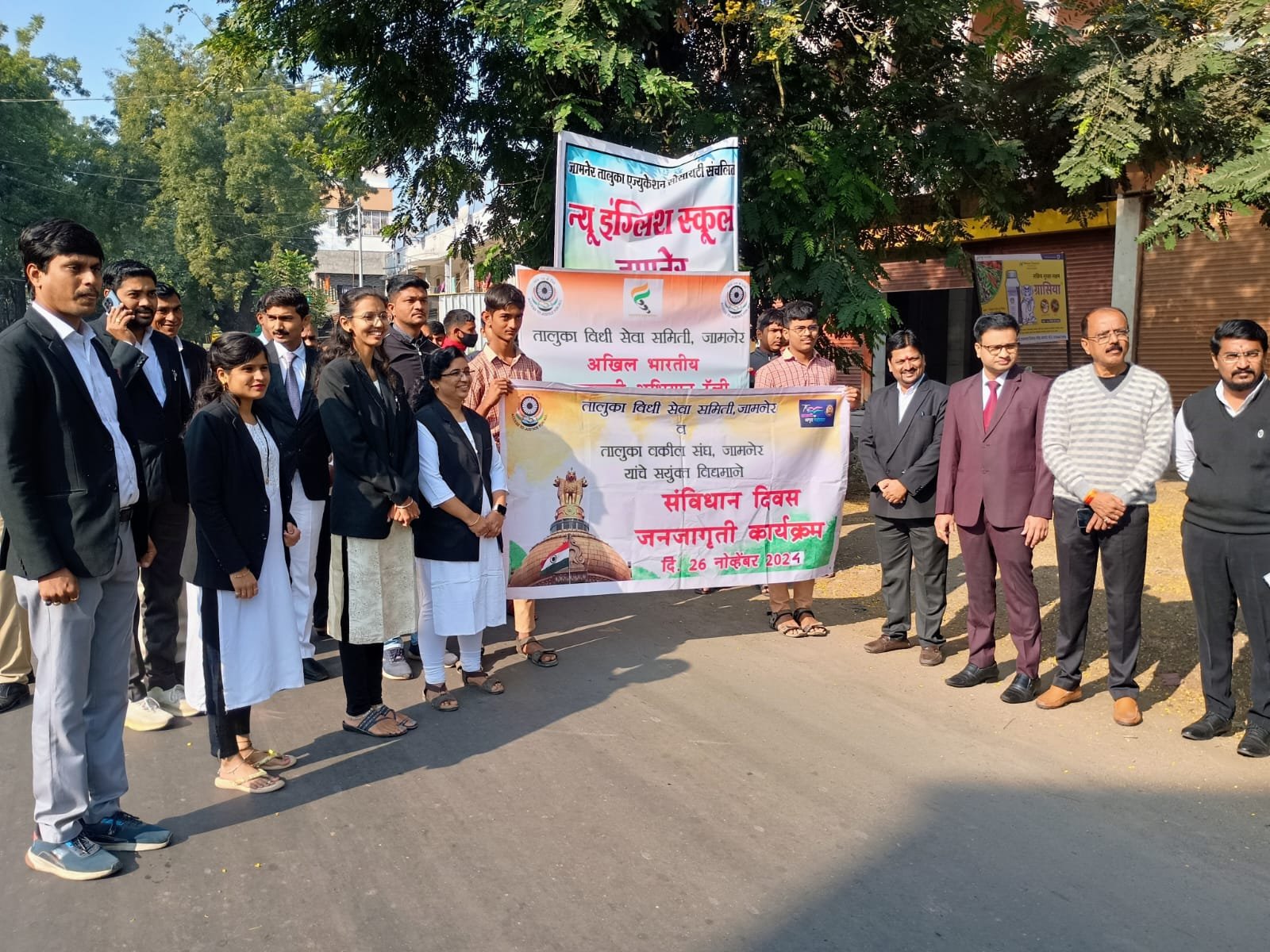 तालुका विधी सेवा समिती आणि तालुका वकील संघाच्या संयुक्त विद्यमाने राष्ट्रीय बाल दिन आणि संविधान दिनानिमित्त जामनेरातील न्यू इंग्लिश स्कूलच्या विद्यार्थ्यांसह जामनेर न्यायालयातून राजमाता जिजाऊ चौकापर्यंत रॅली काढण्यात आली. तसेच न्यू इंग्लिश स्कूलमध्ये कायदेविषयक शिबिर घेण्यात आले.