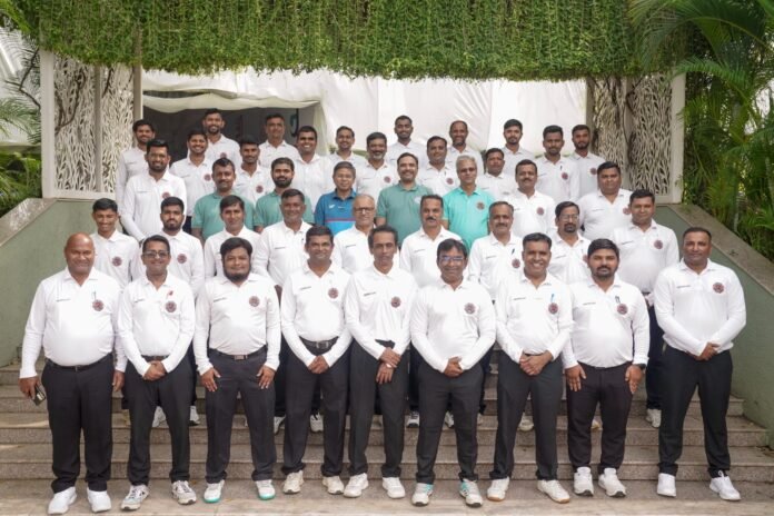 महाराष्ट्र क्रिकेट असोसिएशनच्या मार्गदर्शनाखाली जळगाव जिल्हा क्रिकेट असोसिएशनतर्फे क्रिकेट पंचांची दोन दिवसीय कार्यशाळा जळगाव येथील जैन हिल्सवरील सुबीर बोस सभागृहात नुकतीच पार पडली. कार्यशाळेत जळगावसह नंदुरबार, धुळे, नाशिक, अहिल्यानगर व छत्रपती संभाजीनगर जिल्ह्यांतील ४५ पंच सहभागी झाले होते. बदललेल्या नियमांसह विविध क्रिकेट नियमांची सविस्तर चर्चेसह मार्गदर्शन करण्यात आले. तसेच सर्व पंचांची ५० गुणांची सराव चाचणी (रिव्हिजन टेस्ट) घेण्यात आली. उद्घाटन जळगाव जिल्हा क्रिकेट असोसिएशनचे सचिव अरविंद देशपांडे यांनी केले.