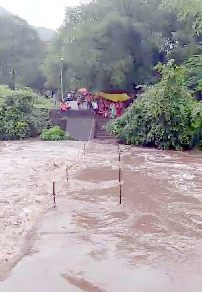 तालुक्यात असलेल्या जागृत पाटणादेवी मंदिरात अनेक भाविक दर्शनासाठी बुधवारी, २१ ऑगस्ट रोजी दुपारच्या सुमारास गेले होते. यावेळी सततच्या सुरू असलेल्या मुसळधार पावसामुळे मंदिराजवळून रस्त्यापर्यंत आणणाऱ्या पुलावरून तिथून डोंगरी नदीला आलेल्या पुरामुळे पाण्याचा प्रवाह वाढला. त्यामुळे काही तास भाविकांना पाण्याचा स्त्रोत कमी होईपर्यंत मंदिर परिसरातच थांबावे लागले. पावसाचा जोर कमी झाल्यानंतर तितूर डोंगरी नदीचा प्रवाह कमी झाला. त्यामुळे पाटणादेवी मंदिरात जाणाऱ्या पुलावरून पाणी कमी झाल्यानंतरच भाविकांना रस्त्यापर्यंत येता आले. मात्र, सततच्या पावसामुळे दर्शनासाठी गेलेले भाविक काही तास पाटणादेवी मंदिरातच अडकून पडले होते.