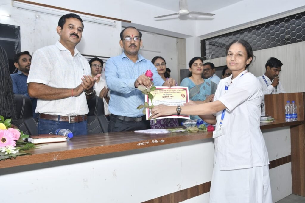 तालुक्यात लोकसंख्या नियंत्रणासाठी शस्त्रक्रिया तसेच साधनांद्वारे उत्कृष्ट कामकाज करणाऱ्या कर्मचाऱ्यांचा जिल्हा आरोग्य अधिकारी डॉ. सचिन भायेकर यांच्या हस्ते जागतिक लोकसंख्या दिनाचे औचित्य साधून प्रमाणपत्र देऊन गौरव करण्यात आला. सुरुवातीला मान्यवरांच्या हस्ते धन्वंतरी पूजनासह दीप प्रज्ज्वलन करण्यात आले.