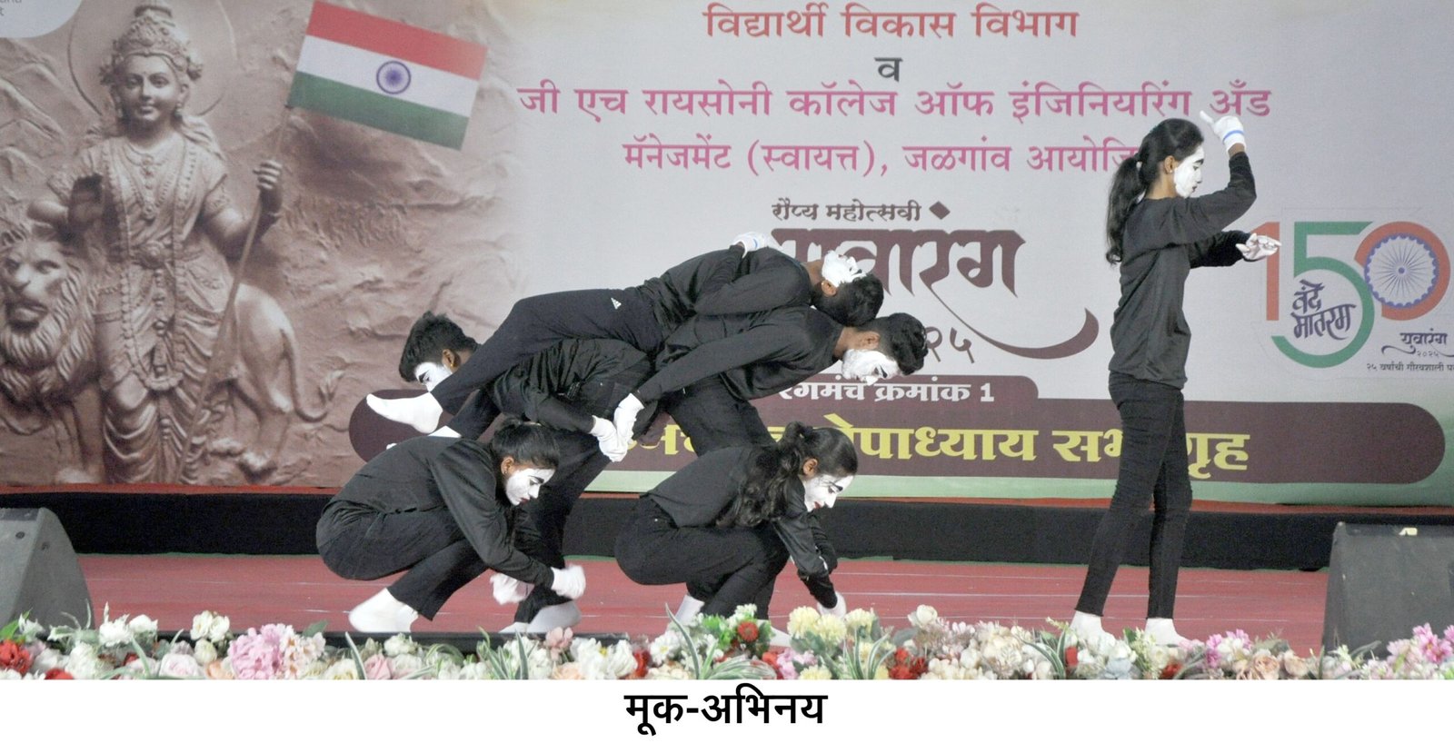 रंगमंच क्र. १ बकिमचंद्र चटोपाध्याय सभागृहात नकलाकार सादर करीत असताना प्रत्येक स्पर्धक आपल्या बाजूने कला सादर करताना दिसत होता. राजकीय नेते, चित्रपट अभिनेता, पक्षी, विविध कार्टून, पुष्पा चित्रपटातील नायक, संगीत वाद्य, नामवंत गायकांचे आवाज, विमान उड्डाण तसेच अमिताभ बच्चन, नाना पाटेकर, निळू फुले, इंदोरीकर महाराज आदींची नक्कल हुबेहुब सादर करीत असताना प्रेक्षक विद्यार्थ्यांमधून दाद मिळवत होते. त्यात २३ महाविद्यालयाच्या संघांनी सहभाग नोंदविला होता. त्याच रंगमंचावर दुपारच्या सत्रात मूक अभिनय स्पर्धा आयोजित केली होती. त्यात भ्रमणध्वनीचा अतिरेकविषयी जनजागृती, ॲसिड अटॅक, कृत्रिम बुध्दीमत्तेचा मानवतेवर होणारा परिणाम तसेच पालकांना मुलांकडून काय हवयं आदी विषयावर २९ महाविद्यालयांच्या संघांनी सहभाग नोंदविला.