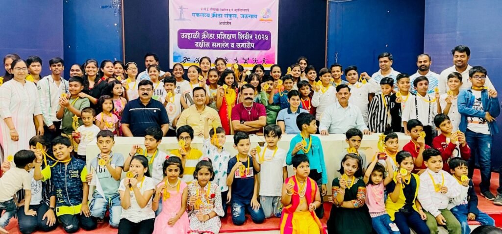 खान्देश कॉलेज एज्युकेशन सोसायटी संचालित एकलव्य क्रीडा संकुल येथे घेण्यात आलेल्या उन्हाळी क्रीडा प्रशिक्षण शिबिराचा मूळजी जेठा महाविद्यालयातील जुन्या कॉन्फरन्स हॉलमध्ये नुकताच समारोप झाला. शिबिरात १९०० विद्यार्थ्यांनी सहभाग घेतला होता. शिबिरात प्रमुख पाहुणे म्हणून हास्य जत्रा फेम तथा मू.जे. महाविद्यालयातील नाट्यशास्त्र विभाग प्रमुख प्रा.हेमंत पाटील, महाविद्यालयाचे कुलसचिव डॉ.जगदीप बोरसे, महाविद्यालयाचे क्रीडा संचालक व एकलव्य क्रीडा संकुलाचे प्रशासकीय अधिकारी प्रा. डॉ. श्रीकृष्ण बेलोरकर, आंतर राष्ट्रीय सायकलिंग खेळाडू आकांक्षा गोरख म्हेत्रे आणि शिबिर प्रमुख प्रा.रणजित पाटील उपस्थित होते.