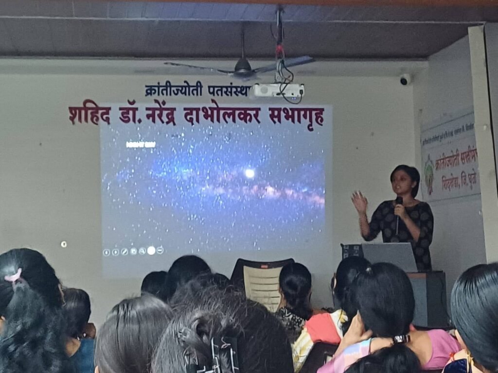 विविध प्रकारची सूर्यग्रहणे, अमावास्या, पौर्णिमा, धुमकेतू अशा निसर्गातील खगोलीय घटना आहेत. त्यात काहीही शुभ-अशुभ नाही. त्याबद्दल अंधश्रद्धा बाळगल्याने आपल्या लहानशा आयुष्यात कधीतरी घडणाऱ्या विलक्षण, सुंदर खगोलीय आविष्काराचा आनंद घेण्यापासून आपण वंचित राहतो. त्याचा मनसोक्त आनंद घेतला पाहिजे, असे प्रतिपादन तन्वी सुषमा परेश यांनी केले. येथील क्रांतीज्योती सखी मंचतर्फे क्रांतीज्योती सावित्रीबाई फुले पतसंस्थेच्या शहिद डॉ. नरेंद्र दाभोलकर सभागृहात ‘सफर अंतराळाची’ हा अवकाशाचे दर्शन घडविणारा अनोखा कार्यक्रम आयोजित केला होता. त्यावेळी त्या बोलत होत्या. अध्यक्षस्थानी क्रांतीज्योती सखी मंचच्या अध्यक्षा सुषमा शाह होत्या.