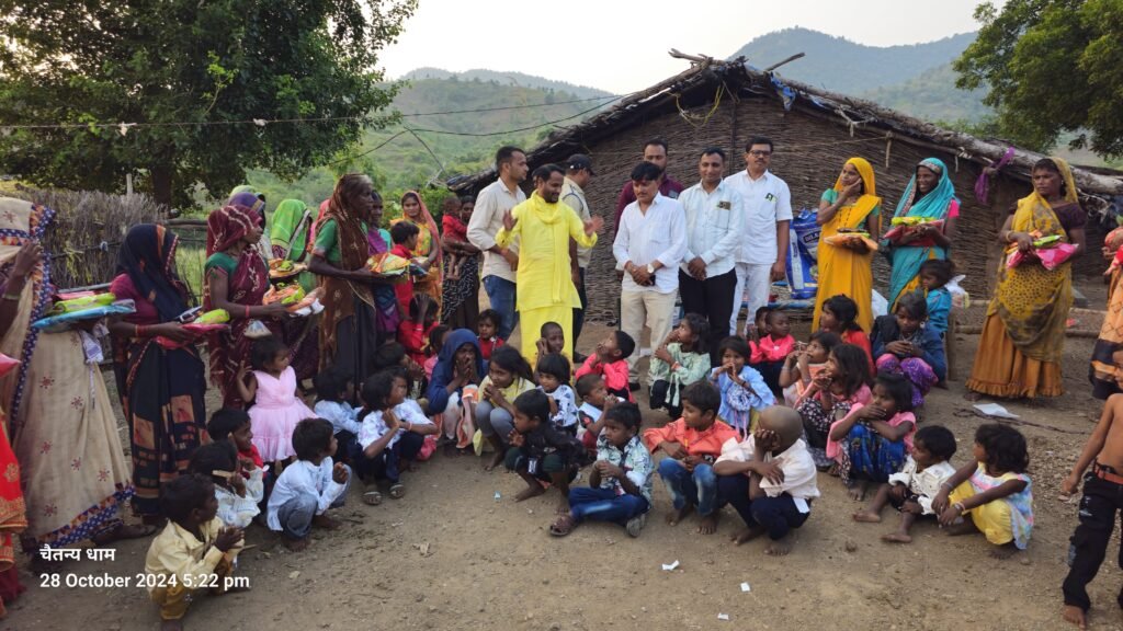 आज शहरी व ग्रामीण भागात प्रत्येक घराघरात नवचैतन्य व आनंद निर्माण करणारा दिवाळीचा सण आहे. मात्र, आजही डोंगर, दऱ्याखोऱ्यांमध्ये राहणारे आदिवासी बांधव व त्यांचा परिवार या सणापासून कोसो दूर आहे. या परिवारांच्या आयुष्यात दिवाळी हा सण नावापुरताच आहे. जामनेर येथील गुरुदेव सेवाश्रम ट्रस्टचे गादीपती परम पूज्य श्याम चैतन्यजी महाराज व चैतन्य युवा सेवा संघ यांनी पाल घाटातील २५ ते ३० आदिवासी कुटुंबाच्या वस्तीत जाऊन त्यांना दिवाळीचा फराळ तसेच लहानांपासून मोठ्यांपर्यंत रेडिमेट कपडे, साडी चोळी, शर्ट पॅन्ट व इतर गृहोपयोगी वस्तू अशा साहित्याचे वाटप केले. त्यामुळे थोडे का होईना पण त्या परिवारांच्या चेहऱ्यावर आनंद आणि सुखाची अनुभूती पहायला मिळाली.