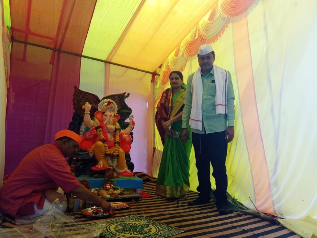कृषी उत्पन्न बाजार समिती म्हणजे सर्व जाती – धर्मीय मिळून एकत्रित असलेला परिवार आहे. त्यामध्ये पाचोरा मार्केट यार्ड व्यापारी असो., पाचोरा मार्केट यार्ड आडत असो., हमाल-मापाडी पुरुष व महिला कामगार संघटनासह कृषी उत्पन्न बाजार समिती कर्मचारी वर्षभर धार्मिक व समाज हिताचे उपक्रम राबविण्यासाठी एकजुटीने सक्रीय असतात. अशा उपक्रमांसाठी पाचोरा बाजार समितीचे सभापती, उपसभापती पी.ए. पाटील यांच्यासह सर्व संचालक मंडळ प्रोत्साहन देतात. असा उपक्रम यावर्षापासून गणेशोत्सोव प्रारंभ करण्याची कल्पना सुचली आणि त्याचे अध्यक्षस्थान व्यापारी असो.चे अध्यक्ष सचिन येवले यांना देण्यात आले. त्यांनी कार्यक्रम यशस्वीतेसाठी उपरोक्त सर्व असो.संघटना यांना विश्वासात घेऊन गणेशोत्सव उत्साहाने साजरा करण्याचे निश्चित करून पाचोरा बाजार समितीचे सभापती, उपसभापती, सचिव, संचालक मंडळ यांच्यासमोर मांडली. तेव्हा सर्वांनी एकमताने होकार देत सर्वोतोपरी सहकार्य करण्याचे आश्वासित केल्यानंतर गणेश चतुर्थीच्या दिवशी समितीच्या आवारात गणेशाची सभापती गणेश पाटील, त्यांच्या पत्नी तथा माजी नगरसेविका भाग्यश्री पाटील यांच्या हस्ते शनिवारी प्रतिष्ठापना करण्यात आली.