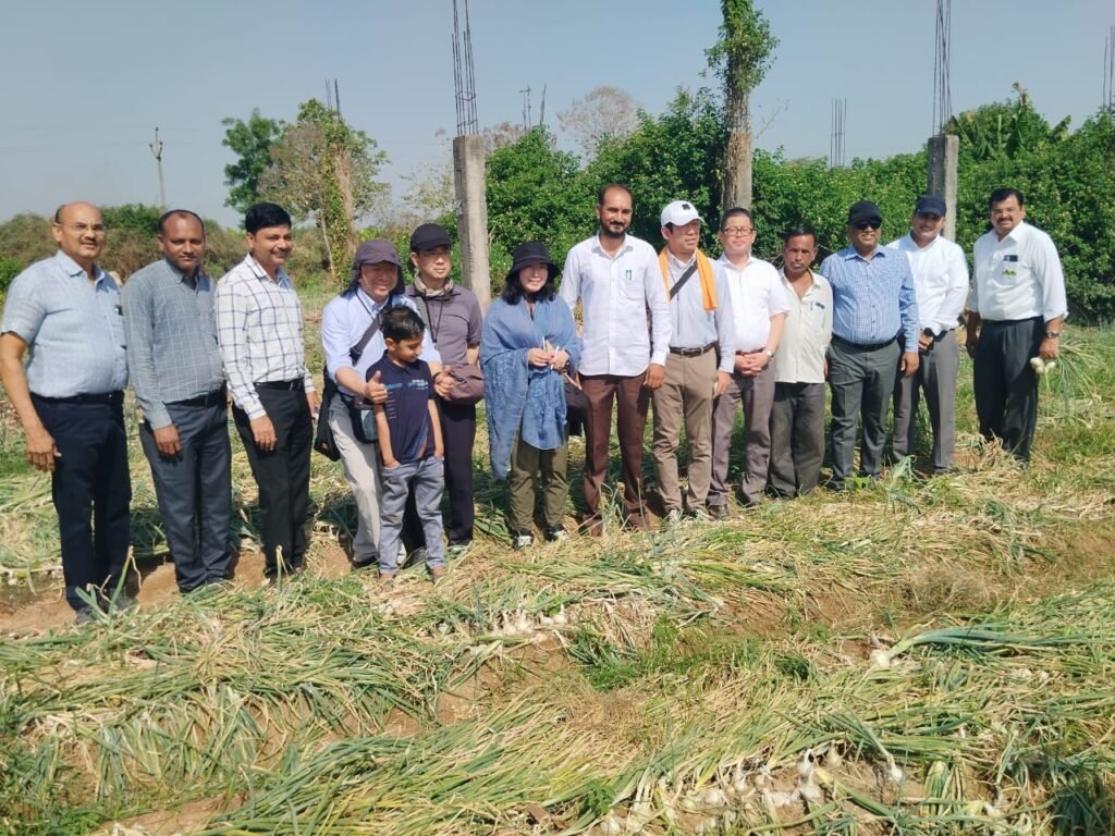 कांदा शेतीवर अभ्यासासाठी आलेले जपान येथील यासुमा कंपनी लि.जपानचे संचालक -कियोशी काटो,महाव्यवस्थापक-तकाशी इशिकावा,सहायक व्यवस्थापक-युमी वातानाबे,सहायक गटनेता-हिरोयुकी होरीकावा,डीकेएसएच कंपनी जापान चे व्यवस्थापक शिरीची इचिमुरा यांनी भोकर येथील सचिन पवार यांंच्या शेतात जाऊन कांदा पिकाची पाहणी केली व सदर पिकाची लागवडीची,निगराणीची तसेच काढणीची माहिती जाणून घेतली.