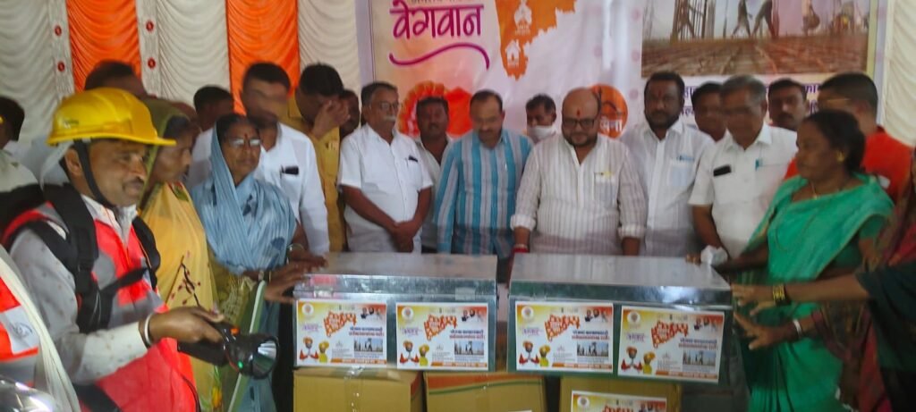 वावडदा येथे रवी कापडणे यांनी आयोजित केलेल्या कार्यक्रमात कामगारांना अत्यावश्यक सुरक्षा संच व गृहपयोगी संच (भांडी) वाटपाच्या कार्यक्रमाप्रसंगी बोलत होते. महाराष्ट्र इमारत व इतर बांधकाम कामगार कल्याणकारी मंडळांतर्गत जिल्ह्यात 80 हजार बांधकाम कामगारांची नोंदणी झालेली असून आता पर्यंत 16 हजार कामगाराच्या कुटुंबीयांसाठी लाभ देण्यात आला आहे.