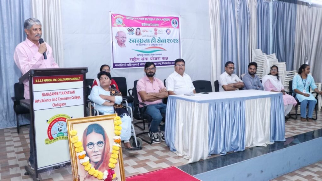 येथील नानासाहेब यशवंतराव नारायणराव चव्हाण कला, विज्ञान आणि वाणिज्य महाविद्यालयात स्वच्छता पंधरवडा अभियान अंतर्गत कवयित्री बहिणाबाई चौधरी उत्तर महाराष्ट्र विद्यापीठ, जळगाव येथील राष्ट्रीय सेवा योजना विभागाचे संचालक डॉ. सचिन नांद्रे यांनी “स्वच्छता हीच खरी सेवा” विषयावर मार्गदर्शन केले. कार्यक्रमाच्या अध्यक्षस्थानी प्राचार्य डॉ.एस. आर.जाधव उपस्थित होते.