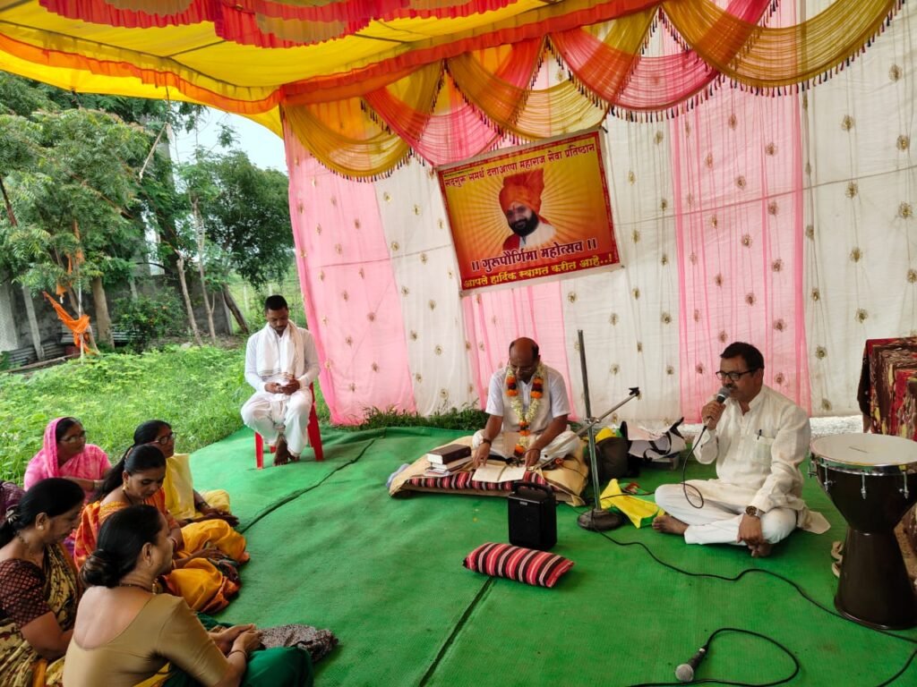 यावेळी प्रभु सुनील जाखेटे इस्कॉन परिवाराने सुश्राव्य भजन तसेच हरीनामाचे जीवनात असलेले महत्त्व गीता भागवतमधील अनेक उदाहरण देवून पटवून दिले. आजच्या पवित्र दिनी हरीनामाचा संकल्प करू, असे भाविकांना सांगितले. तसेच ह.भ.प. मयूर महाराज जावळे (ममुराबाद) यांनी गुरुपौर्णिमेचे महात्म्य, गुरु भक्ती व गुरु शिष्य संबंध कसे असावे, याबाबत अनेक सोदाहरणासह दाखले दिले. तसेच गुरुने आजच्या वर्तमान स्थितीतील शिष्याची व्यवस्था न बघता परिस्थितीनुसार मार्गदर्शन करून निर्भेळ, सत्य ज्ञानदान करणे गरजेचे आहे. वाट दाखविणारे असायला पाहिजे, वाट लावणाऱ्यांचा संग नको, याविषयी प्रवचन केले.
