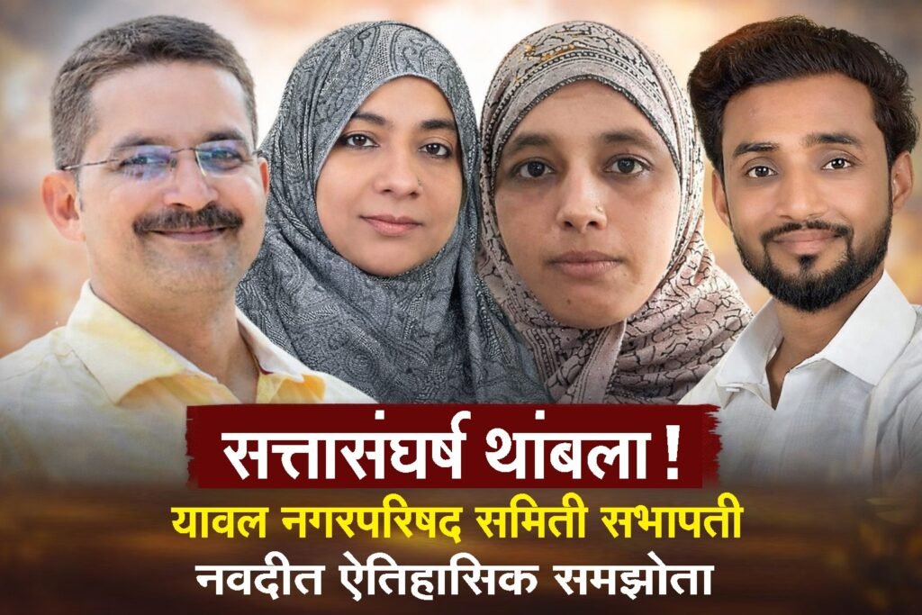 यावल नगरपरिषदेत विषय समितीच्या सभापतींची निवड दि. १९ जानेवारी रोजी नगरपरिषदेच्या सभागृहात संपन्न झाली. या सर्वसाधारण सभेत महाविकास आघाडीच्या तिन समित्यांना सभापतीपद मिळाले, तर भाजप आणि अजित पवार यांच्या राष्ट्रवादी (अप) गटाने एकत्र येऊन २ सभापतीपदांची संधी मिळवली.