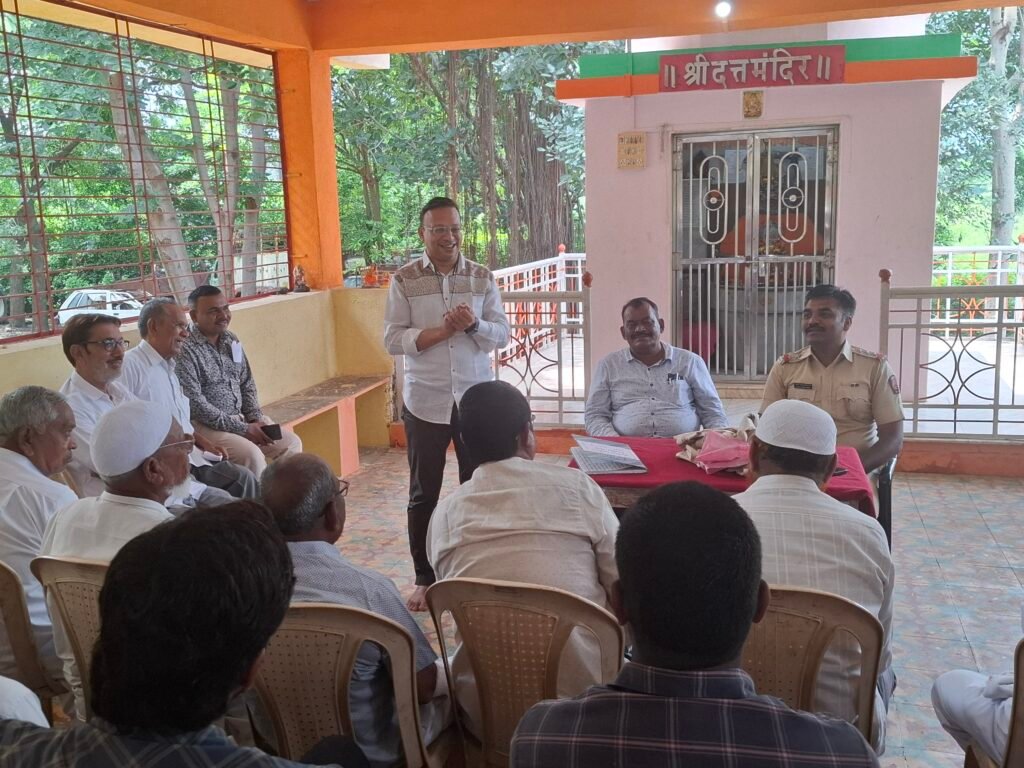 प्रथम काही सदस्यांनी सपोनि यांचे शाल, पुष्पगुच्छ देऊन स्वागत केले. आगामी येणारे सण कसे शांततेत साजरे होतील, यावर सपोनि यांनी सदस्यांशी चर्चा केली.