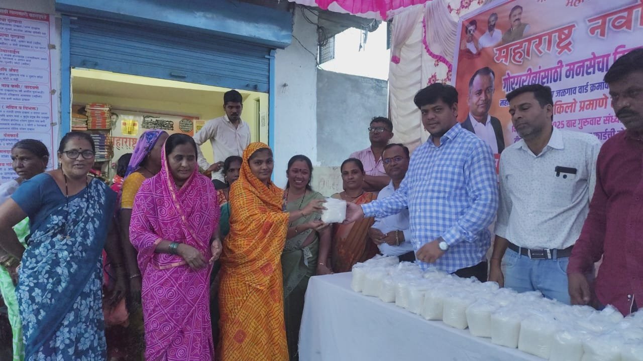 दिवाळीचा उत्साह समाजातील प्रत्येक घटकापर्यंत पोहोचविण्यासाठी महाराष्ट्र नवनिर्माण सेनेने (मनसे) हरीविठ्ठल नगरातील शाखेत ‘आनंदाचा शिधा’चा उपक्रम राबविला. उपक्रमातंर्गंत गरजू कुटुंबांना फक्त २१ रुपये किलो दराने साखर उपलब्ध करून देण्यात आली. हा उपक्रम शहरातील हरी विठ्ठल नगरातील वार्ड क्रमांक ११ मध्ये मनसे महिला शाखेच्यावतीने आयोजित केला होता. साखर वितरणावेळी उपस्थित महिलांच्या चेहऱ्यावर हास्य उमलले होते. यावेळी ४०० किलो साखरचे वाटप करण्यात आले.