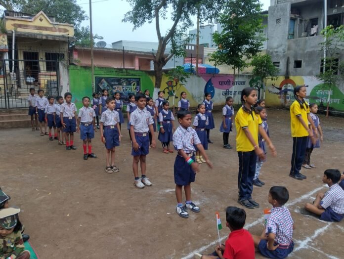 शाळेच्या परिसरात स्वातंत्र्य दिनानिमित्त काढली प्रभात फेरी
