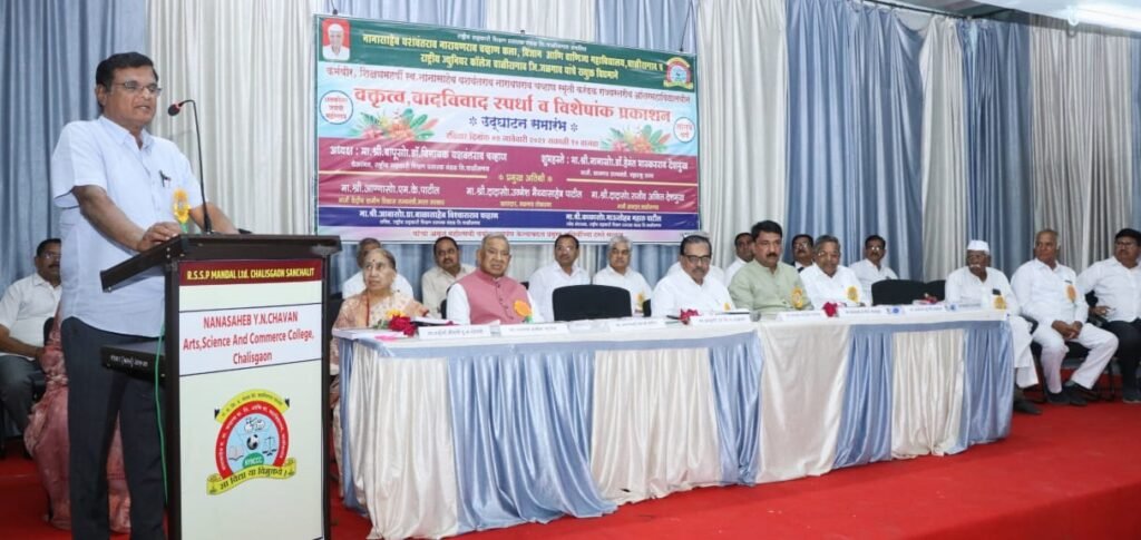 येथील नानासाहेब यशवंतराव नारायणराव चव्हाण कला, विज्ञान आणि वाणिज्य महाविद्यालय आणि चाळीसगाव राष्ट्रीय ज्युनिअर कॉलेज यांच्या संयुक्त विद्यमाने महाविद्यालयात स्वा.सै. कर्मवीर शिक्षण महर्षी नानासाहेब यशवंतराव नारायणराव चव्हाण यांच्या शतकोत्तर जयंती महोत्सव वर्षानिमित्त राज्यस्तरीय आंतर महाविद्यालयीन वक्तृत्व आणि वादविवाद स्पर्धेचे उद्घाटन माजी कामगार राज्यमंत्री डॉ.हेमंत देशमुख यांच्या हस्ते करण्यात आले. अध्यक्षस्थानी चाळीसगाव राष्ट्रीय सहकारी शिक्षण प्रसारक मंडळ लिमिटेडचे चेअरमन डॉ.विनायक चव्हाण होते.