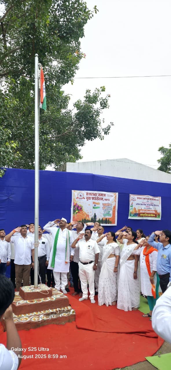 कंजरभाट समाज युवा फाउंडेशनतर्फे स्वातंत्र्यदिनाचा उत्सव मोठ्या उत्साहात आणि देशभक्तीच्या वातावरणात साजरा करण्यात आला. कंजरभाट समाज मंदिराच्या प्रांगणात झालेल्या कार्यक्रमात संस्थेचे उपाध्यक्ष प्रदीप नेतलेकर यांच्या हस्ते ध्वजारोहण करण्यात आले. राष्ट्रगीताच्या गजरात आणि ‘भारत माता की जय’च्या घोषणांनी संपूर्ण परिसर दणाणला होता. प्रारंभी कै. दिलीप गागडे, समाजाचे माजी अध्यक्ष सचिन बाटुंगे यांना श्रद्धांजली अर्पण करण्यात आली. यावेळी व्यासपीठावर प्रतिभा माध्यमिक विद्यालयाचे मुख्याध्यापक बी. एस. बाविस्कर, प्राथमिक विद्यालयाच्या मुख्याध्यापिका नंदा पाटील, संजयसिंग पाटील, मंजुषा बियाणी, प्रल्हाद महाजन यांसह समाजातील मान्यवर व पदाधिकारी उपस्थित होते.
