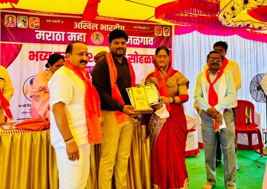 यावेळी खा.श्रीमती स्मिताताई वाघ, अखिल भारतीय मराठा महासंघाचे राष्ट्रीय सरचिटणीस संभाजी राजे दहातोंडे, राष्ट्रीय संघटक डॉ.गजेंद्र भोसले, जिल्हाध्यक्ष दिलीप पाटील, जिल्हा उपाध्यक्ष पी.एम.पाटील, जिल्हा संपर्क प्रमुख खुशाल बिडे, जिल्हा कार्याध्यक्ष सुरेश पाटील, जिल्हा कोषाध्यक्ष अशोक भोसले, जिल्हा संघटक बी.बी.भोसले, जिल्हा सल्लागार संभाजी इंगळे, मच्छिंद्र पाटील, जिल्हा सचिव साहेबराव पाटील, उ.बा.ठाकरे गटाच्या महिला जिल्हाध्यक्ष महानंदा पाटील, पंचायत समितीचे सभापती तथा पद्मालय देवस्थान ट्रस्टचे अध्यक्ष आनंदराव पाटील यांच्यासह पदाधिकारी, कार्यकर्ते उपस्थित होते.