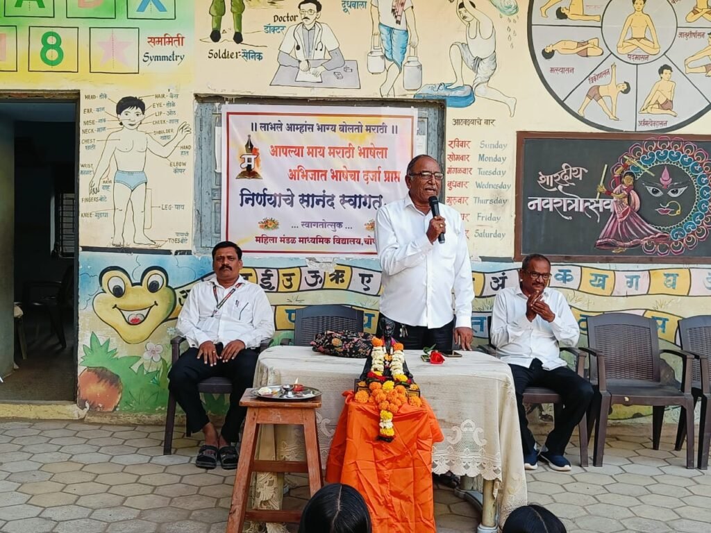 विद्यालयाचे मुख्याध्यापक तथा माय मराठी महाराष्ट्र शिक्षक संघाचे तालुकाध्यक्ष सुनील पाटील यांनी मराठी आणि इतर बोलीभाषा यांच्या संवर्धनासाठी मोठ्या प्रमाणात प्रयत्न करता येतील, असे सांगत मराठी भाषेचा गौरवशाली इतिहास सांगितला. माय मराठी महाराष्ट्र संघाचे राज्य उपाध्यक्ष विलास पाटील (सेवा निवृत्त मुख्याध्यापक) यांनी विद्यार्थ्यांना मराठी भाषेची थोरवी सांगत मार्गदर्शन केले. याप्रसंगी संस्थेच्या अध्यक्ष पूनम गुजराथी उपस्थित होत्या.