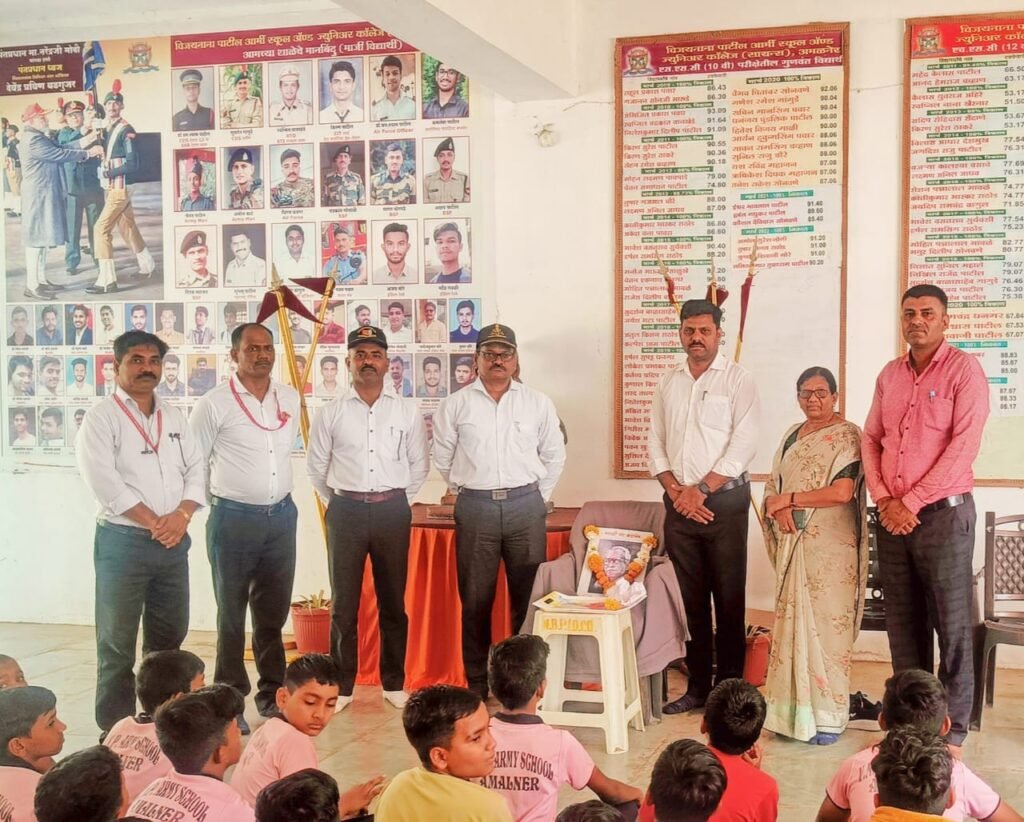येथील विजय नाना पाटील आर्मी स्कुल अँड ज्युनिअर कॉलेजमध्ये मराठी भाषा गौरव दिन उत्साहात साजरा करण्यात आला. अध्यक्षस्थानी शाळेचे प्रभारी कमांडट सुभेदार मेजर नागराज पाटील होते. प्रमुख पाहुणे म्हणून सुभेदार मेजर श्रीराम पाटील, ज्येष्ठ शिक्षिका एस.पी.अहिरे होत्या. प्रमुख वक्ते म्हणून ज्येष्ठ शिक्षक डी. डी.घोडेस्वार, सांस्कृतिक विभाग प्रमुख शरद पाटील, संगणक शिक्षक व्ही. डी.पाटील होते.