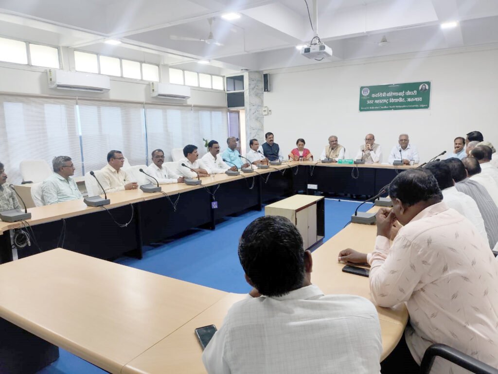 कवयित्री बहिणाबाई चौधरी उत्तर महाराष्ट्र विद्यापीठ प्राध्यापकांची बहुप्रतिष्ठीत संघटना एन.मुक्टोच्यावतीने कॅस अंतर्गत विलंबाने झालेल्या पदोन्नती, आचारसंहिता लागू झाल्यामुळे प्रलंबित असलेली प्रकरणे, त्यामुळे होणारे आर्थिक आणि शैक्षणिक नुकसान, नवीन शैक्षणिक धोरणाची अंमलबजावणी झाल्यानंतर उच्च शिक्षण क्षेत्रात झालेला बदल, विद्यार्थ्यांच्या प्रवेशा संबंधीचे प्रश्न, पदवी स्तरावर कॅरीऑन पद्धत सुरू करावी, विद्यार्थ्यांचे ड्रॉप आऊट कमी व्हावे अश्या अनेक प्रश्नांवर खबरदारी आणि उपाय म्हणून डॉ.व्ही.एल.महेश्वरी-कुलगुरू, कवयित्री बहिणाबाई चौधरी उत्तर महाराष्ट्र विद्यापीठ यांच्याशी चर्चेसाठी वेळ मिळावा म्हणून काही दिवसांपूर्वीच निवेदन दिले होते. त्या अनुषंगाने मंगळवारी, २५ जून रोजी कुलगुरू यांच्या उपस्थितीत विद्यापीठ प्रशासनातील अधिकारी प्र.कुलगुरू डॉ.एस.टी.इंगळे, संचालक डॉ.विनोद पाटील, डॉ.योगेश पाटील व एन.मुक्टो.संघटनेचे शिष्टमंडळासोबत चर्चा झाली.