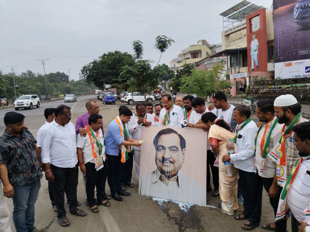 महाराष्ट्राचे नेते तथा विद्यमान विधान परिषद सदस्य आ.एकनाथराव खडसे यांनी रूपाली चाकणकर यांच्याबद्दल ‘आक्षेप आहे’ वक्तव्य केल्याचा खोटा कांगावा करून भाजप आणि ‘हनीट्रॅप’च्या विषयाने बदनाम होत असल्याने जनतेचे लक्ष विचलित करण्यासाठी खोट्या केसेस करणे, नाथाभाऊंना बदनाम करण्यासाठी महायुतीच्या नावाने ८ ऑगस्ट रोजी आंदोलन करण्यात येऊन आ. खडसे यांच्या प्रतिमेला शाईसह काळे फासण्याचा केविलवाणा प्रकार करण्यात आला. त्यांच्या अशा कृत्याचा निषेध म्हणून ९ ऑगस्ट रोजी दुपारी ४ वाजता राष्ट्रवादी काँग्रेस पार्टी शरद पवार गटातर्फे आ.खडसे यांच्या समर्थनार्थ केलेल्या आंदोलनाचा घोषणा देत त्यांच्या प्रतिमेला दुग्धाभिषेक करण्यात आला.