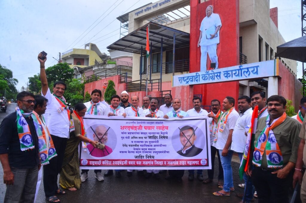 आंदोलनात राष्ट्रवादी काँग्रेस शरदचंद्र पवार पक्षाचे जिल्हाध्यक्ष अॅड. रवींद्र पाटील, महानगर अध्यक्ष अशोक लाडवांजरी, जिल्हा समन्वयक विकास पवार, युवक प्रदेश सरचिटणीस रमेश पाटील, महानगर महिला अध्यक्ष मंगला पाटील, युवक जिल्हा अध्यक्ष उमेश पाटील, युवक महानगर अध्यक्ष रिकु चौधरी , सहकार सेल अध्यक्ष वाल्मीक पाटील, अल्पसंख्यांक जिल्हाध्यक्ष मजहर पठाण , शहर संघटक राजू मोरे , अल्पसंख्यक महानगर जिल्हाअघ्यक्ष डॉ रिजवान खाटीक, डॉ संग्रामसिंह सुर्यवंशी , ॲड. सचिन पाटील ओबीसी आघाडी जिल्हाअघ्यक्ष नामदेव वाघ, महानगर जिल्हाउपाघ्यक्ष किरण राजपूत, महानगर जिल्हाउपअघ्यक्ष अमोल कोल्हे, महानगर जिल्हासरचिटणीस रहीम तडवी , युवक महानगर जिल्हाउपअध्यक्ष चेतन पवार ,शैलेश अभंगे , समाजिक न्याय संघटक संजय जाधव , रफिक शहा, अयाज शहा ,चंद्रकांत चौधरी , राष्ट्रवादी ऑटो रिक्शा महानगर जिल्हाअघ्यक्ष गणेश सोनार , अल्पसंख्यक महानगर सरचिटणीस मतिन सैय्यद , भल्ला तडवी आदी पदाधिकारी उपस्थित होते.
