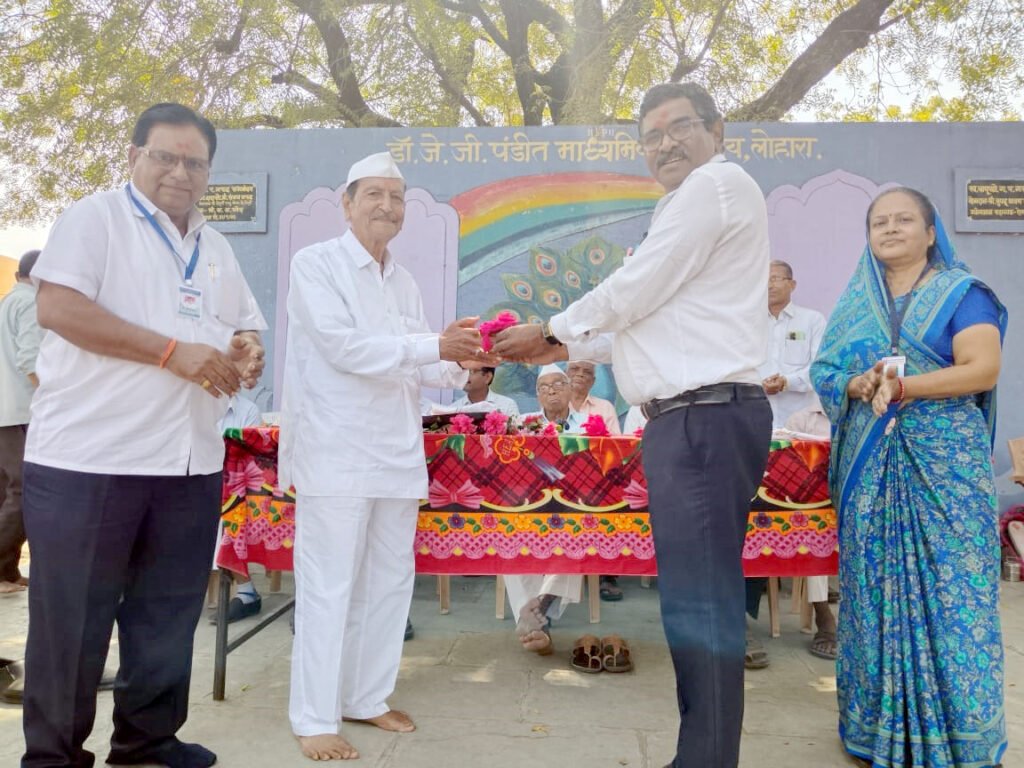 विश्वासराव पाटील यांनी मनोगत व्यक्त करून सत्यनिष्ठा प्रामाणिक कार्यास महत्त्व दिले. कार्यक्रमाचे अध्यक्ष भीमराव शेळके यांनी मनोगतातून शाळेच्या शैक्षणिक वाटचालीविषयी मार्गदर्शन केले. यशस्वीतेसाठी विद्यालयाचे मुख्याध्यापक एस.टी.चिंचोले, उपमुख्याध्यापिका यु.डी.शेळके, पर्यवेक्षक व्ही.एम.शिरपुरे यांनी मार्गदर्शन केले. कार्यक्रमाला सर्व शिक्षक, शिक्षकेतर कर्मचारी उपस्थित होते. प्रास्ताविक विद्यालयाचे मुख्याध्यापक एस.टी.चिंचोले, सूत्रसंचालन तथा आभार बी.एन.पाटील यांनी मानले.